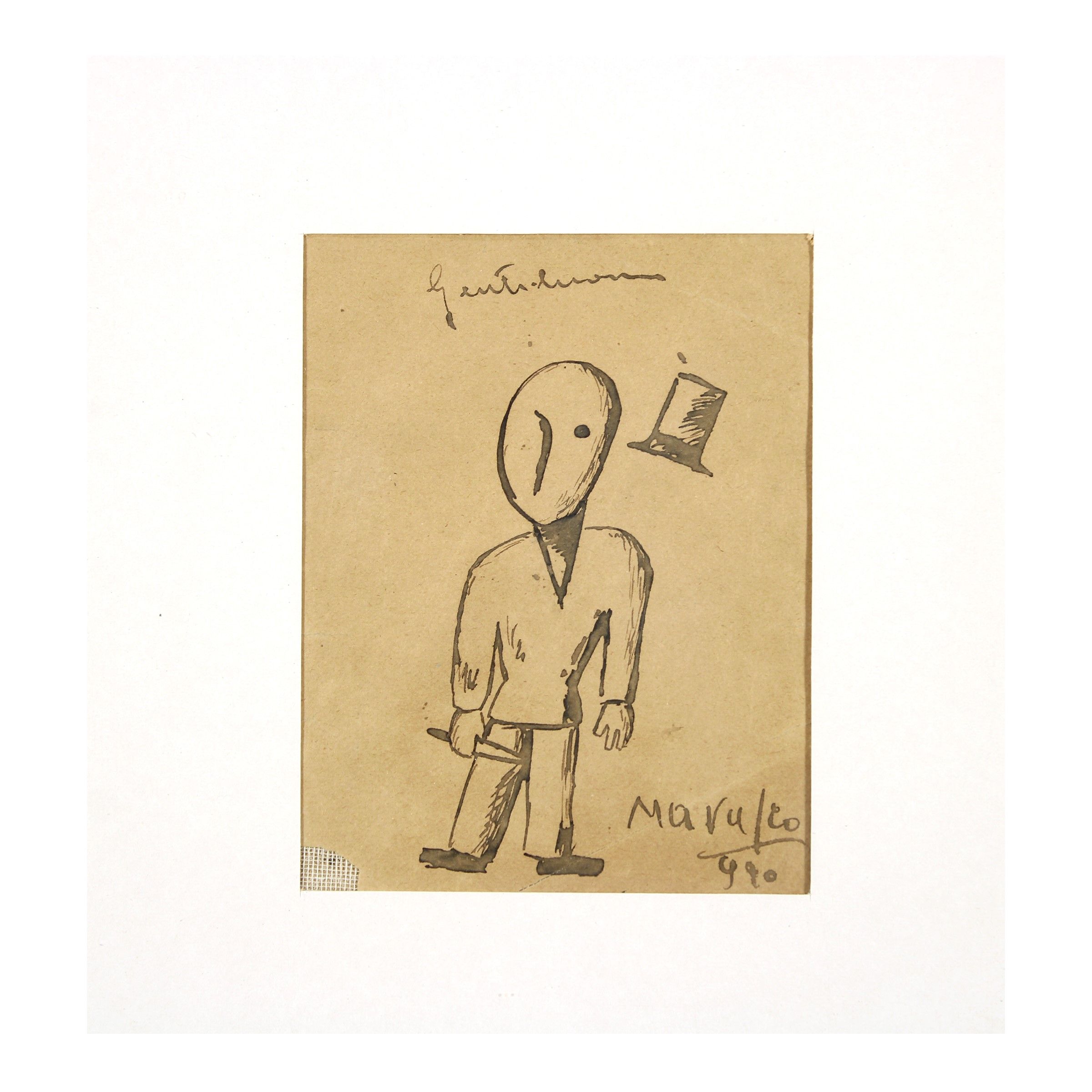 inizio XX Sec. 'Gentiluomo', inchiostro su carta telata, firmato in basso a destra, entro cornice