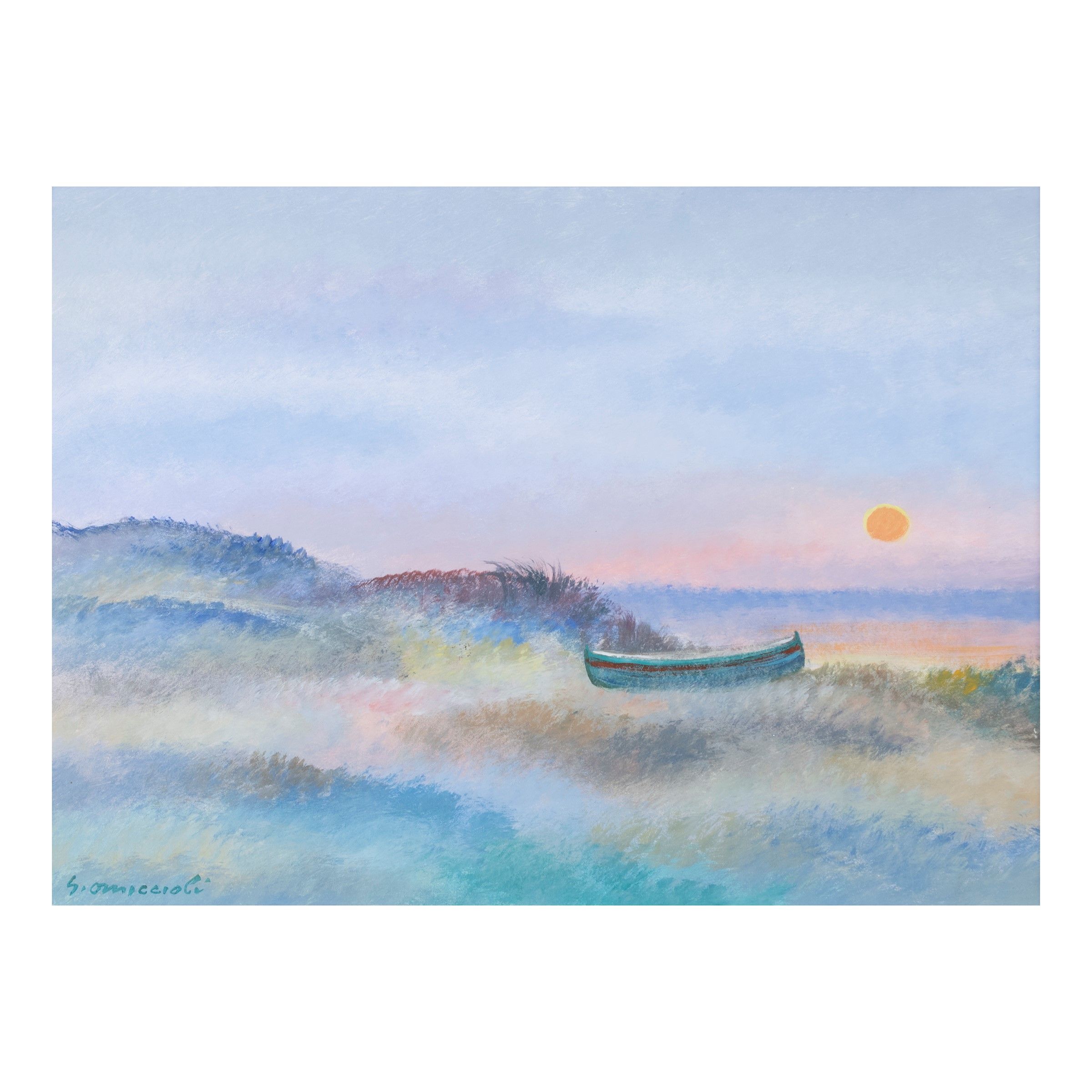 Roma 1901 - 1975 'Barca tra le dune', olio su cartone, firmato in basso a sinistra, entro cornice