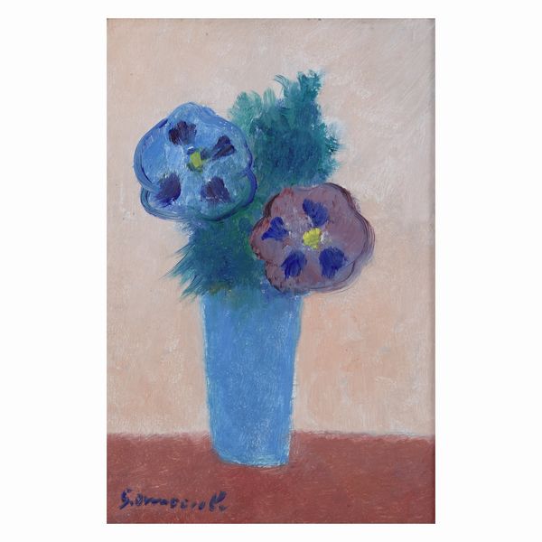 Roma 1901 - 1975 'Vaso di fiori', 1971, olio su tela, firmato in basso a sinistra e sul retro, entro cornice