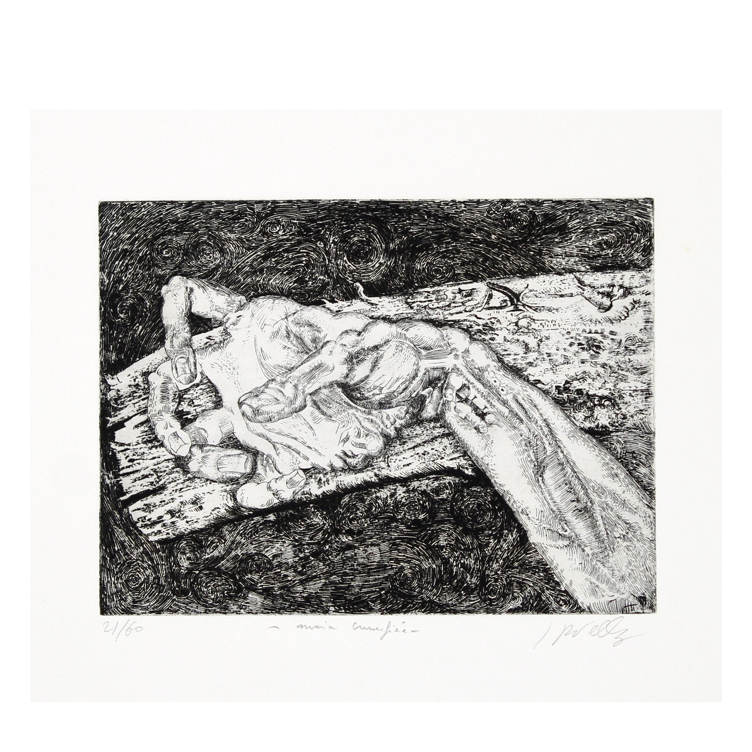 Audierne 1943 - Trevignano Romano 1990 'Main crucifiée', acquaforte, es. 21/60, firmata in basso a destra e titolata al centro