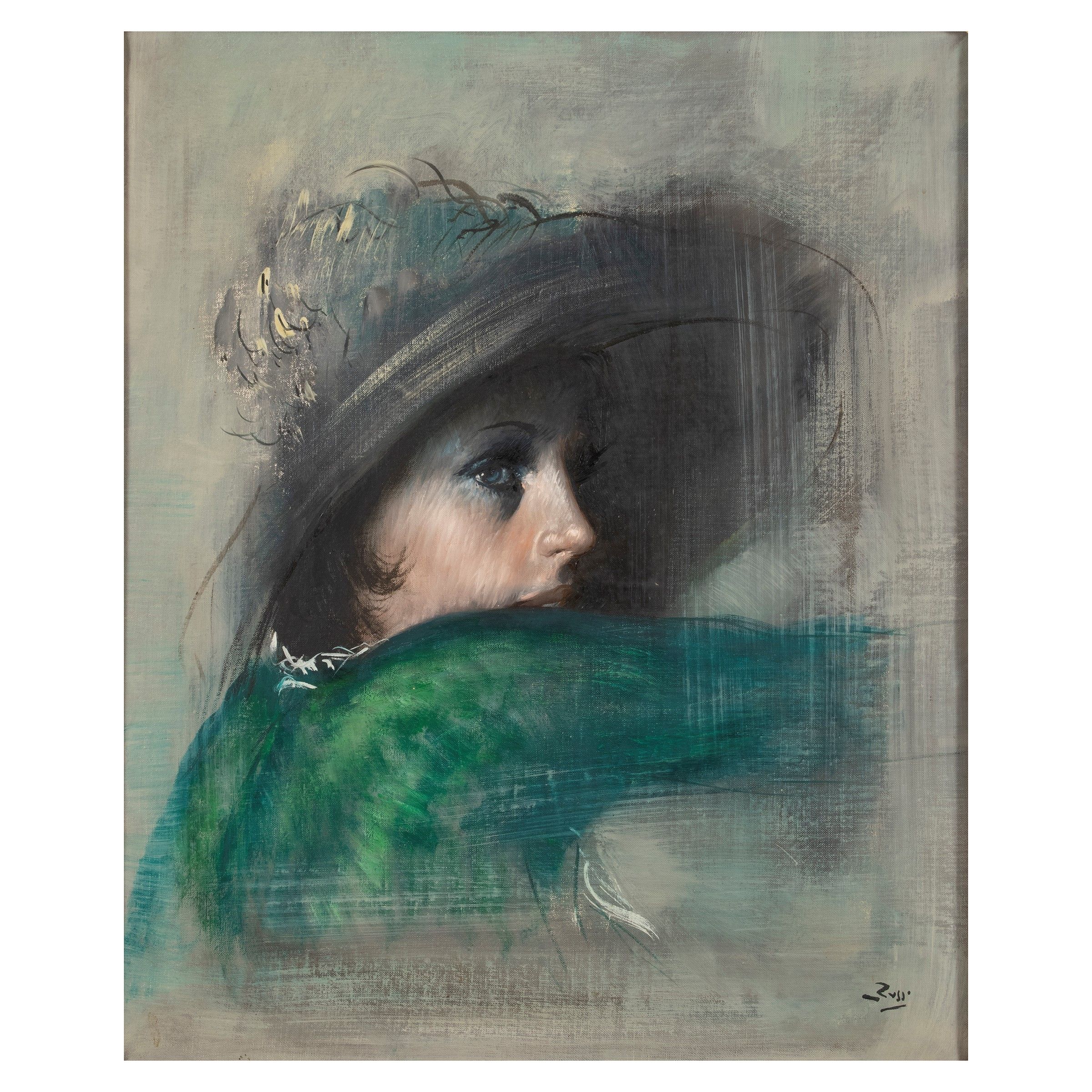 Napoli 1925 - Roma 2000 'Diva', olio su tela, firmato in basso a destra, firmato e titolato sul retro, entro cornice