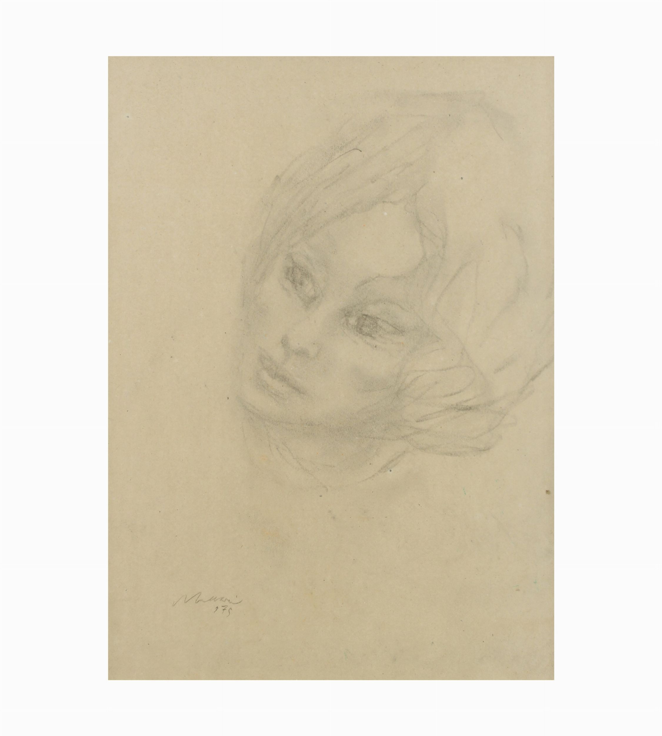 Siena 1898 - Roma 1989 'Volto femminile', 1975, matita su carta intelata, firmato e datato in basso a sinistra, entro cornice