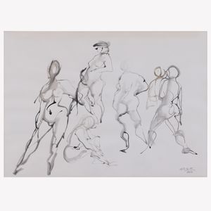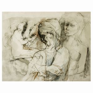 32,5x40,5 cm. Rovigno 1926 - 1975 'Donne', 1966, china e acquerello su carta, firmato e datato in basso a destra, [..]