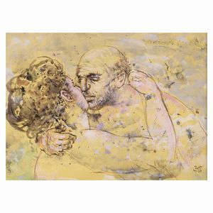 22,5x30,5 cm. Italia, XX Sec. 'Amanti', 1965, tecnica mista su carta, firmato e datato in basso a destra, entro [..]