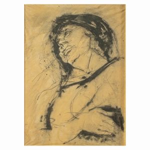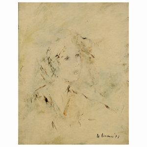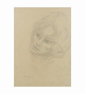 49x36 cm. Siena 1898 - Roma 1989 'Volto femminile', 1975, matita su carta intelata, firmato e datato in basso [..]