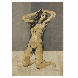 70x50 cm. Linguaglossa 1900 - Milano 1995 'Nudo femminile', litografia es. 76/99, firmato in basso a destra, entro [..]