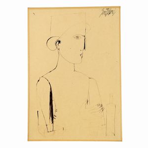 33x23 cm. Faenza 1909 - Roma 1981 'Donna con bottiglia', inchiostro su carta, firmato in alto a destra, entro [..]