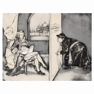 65x77 cm. Catania 1913 - Roma 1995 'La Coreana', 1973, litografia es. 16/90, firmato e datato in basso a destra, [..]