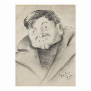 20x15 cm. Italia, XX Sec. 'Ritratto maschile', 1947, matita su carta, entro cornice