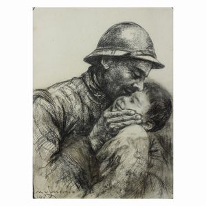 50x36,5 cm. Roma 1882 - 1956 'Senza titolo', 1917, tecnica mista su cartoncino, firmato e datato in basso a sinistra, [..]
