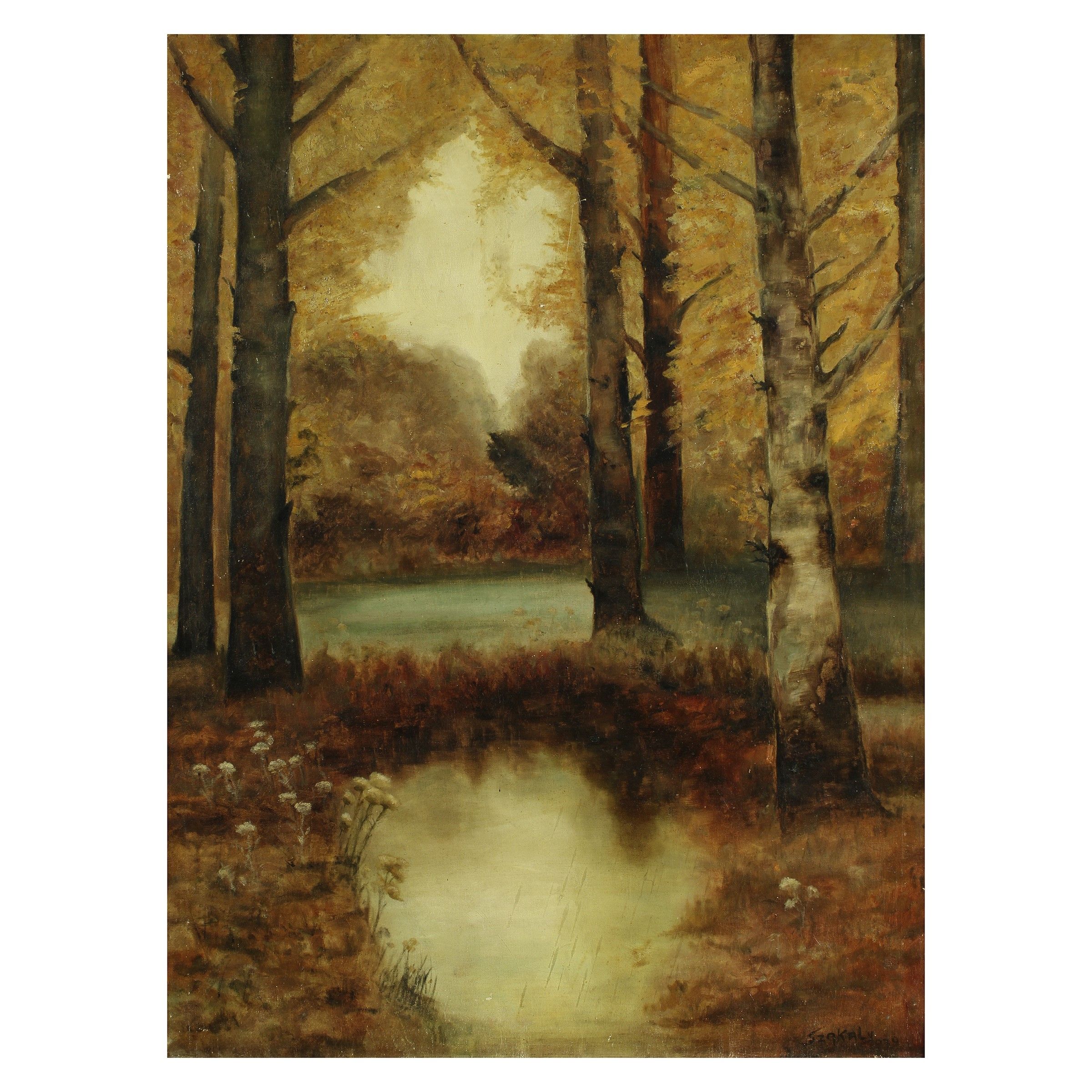 XX Sec. 'Paesaggio boschivo', 1939, olio su tela, firmato e datato in basso a destra, entro cornice