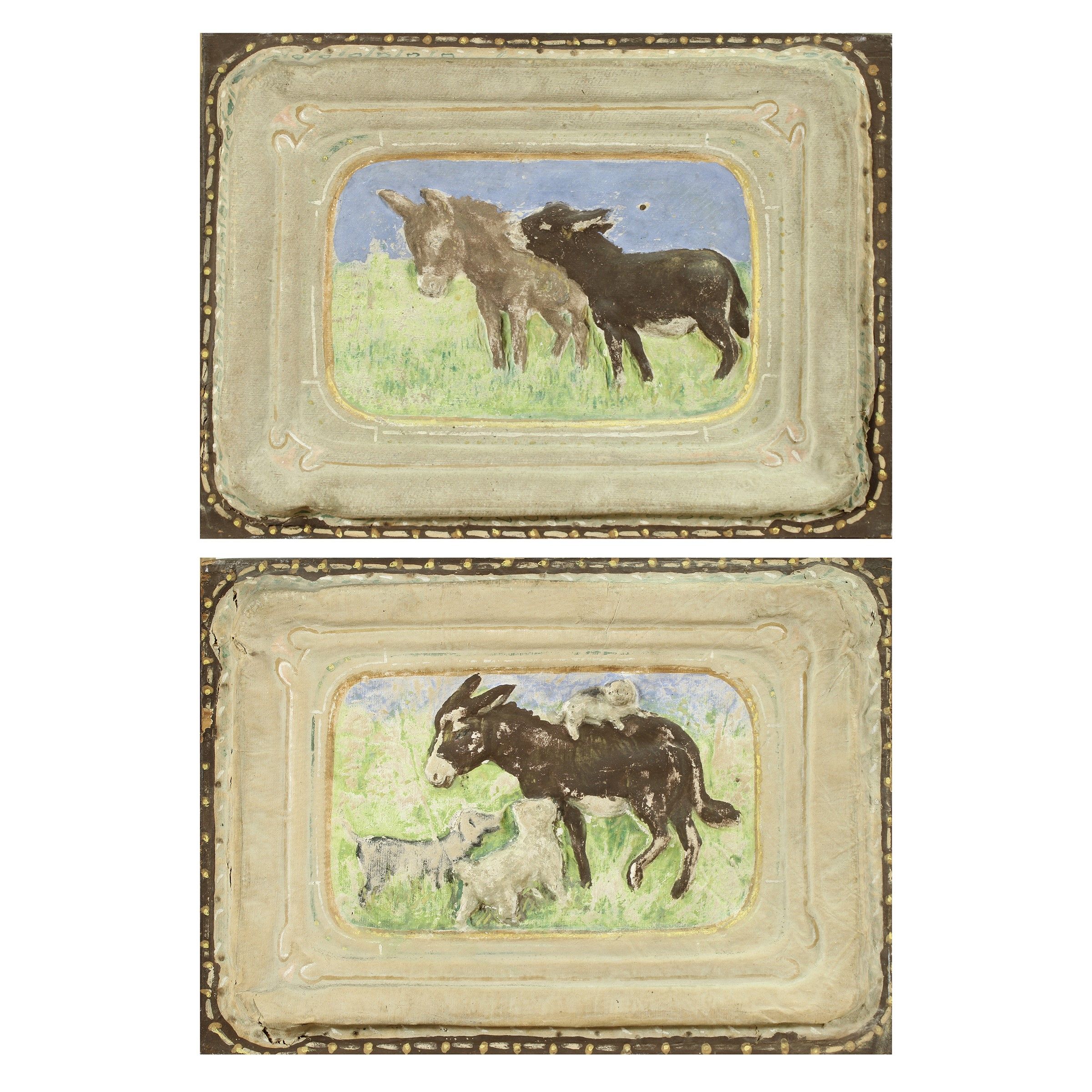 XX Sec. 'Asini', coppia di tecniche miste applicate su tavola, entro cornici