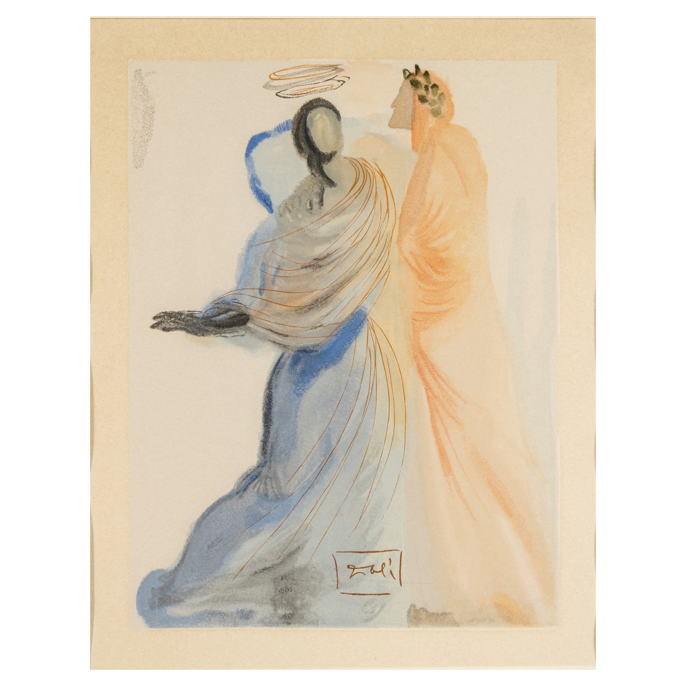 Figueres 1904 - 1989 'Dante e Beatrice', stampa, entro cornice