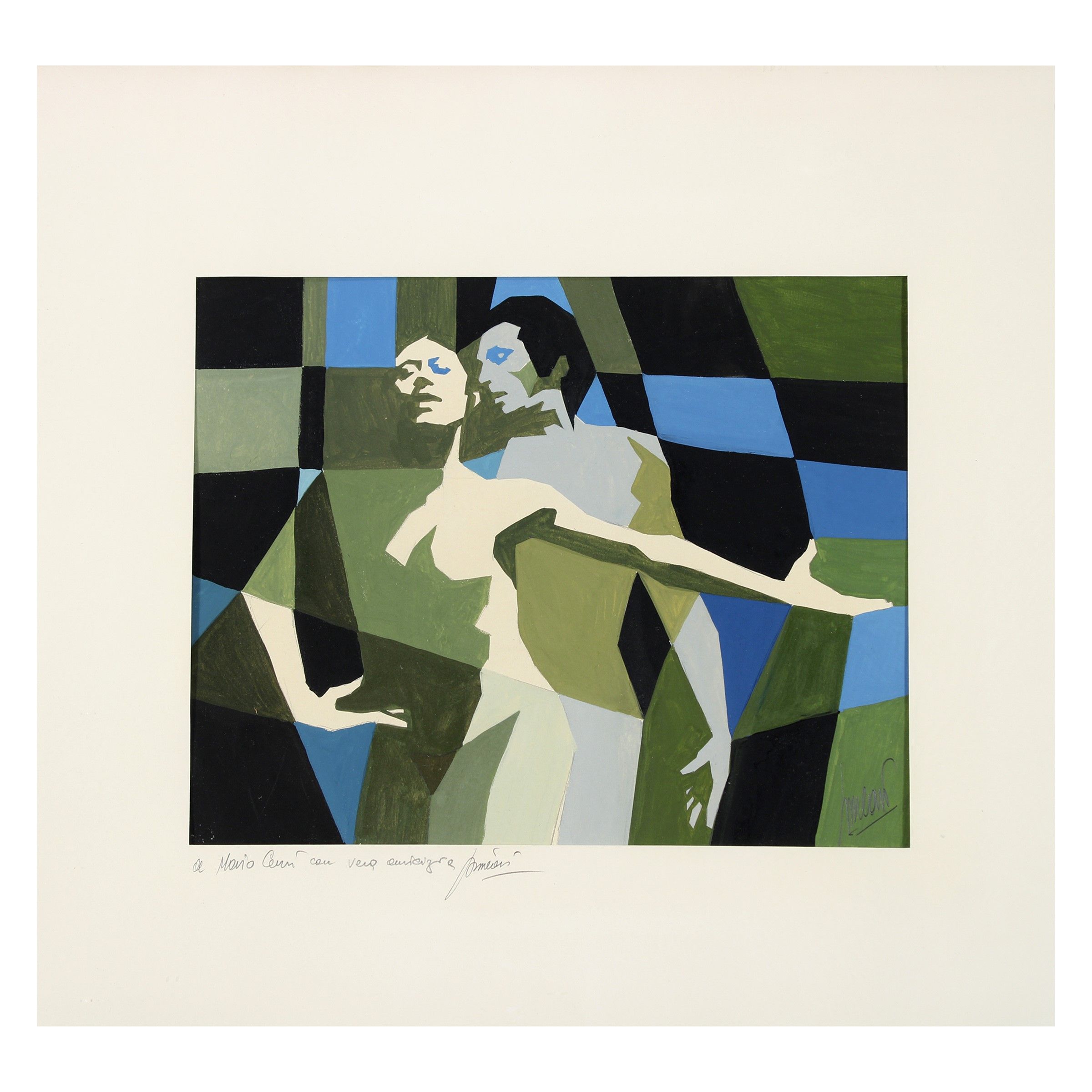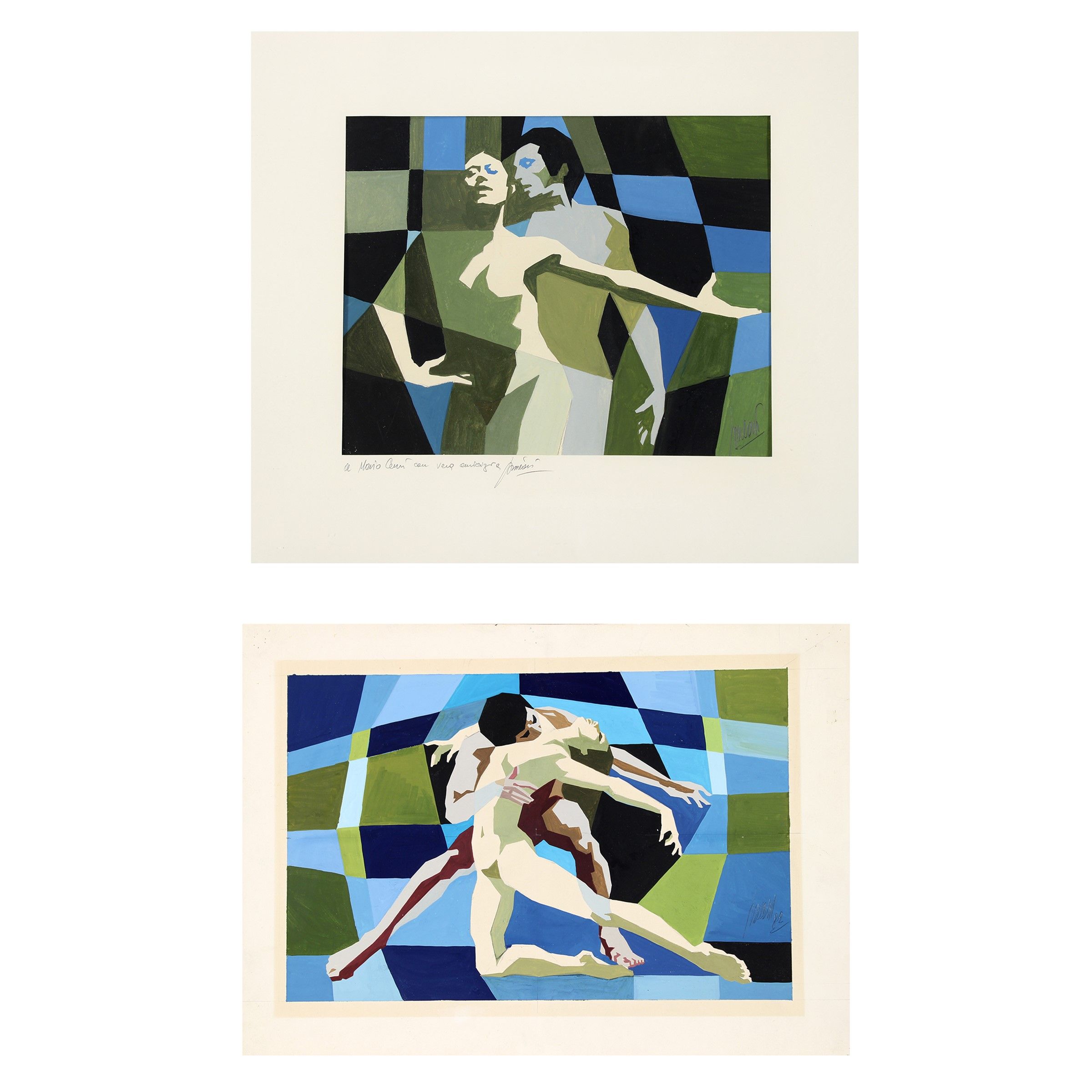 Migliarino 1928- Roma 2007 'Ballerini', 1982, coppia di tecniche miste su cartoncino, firmate e datate in basso a destra, entro cornici