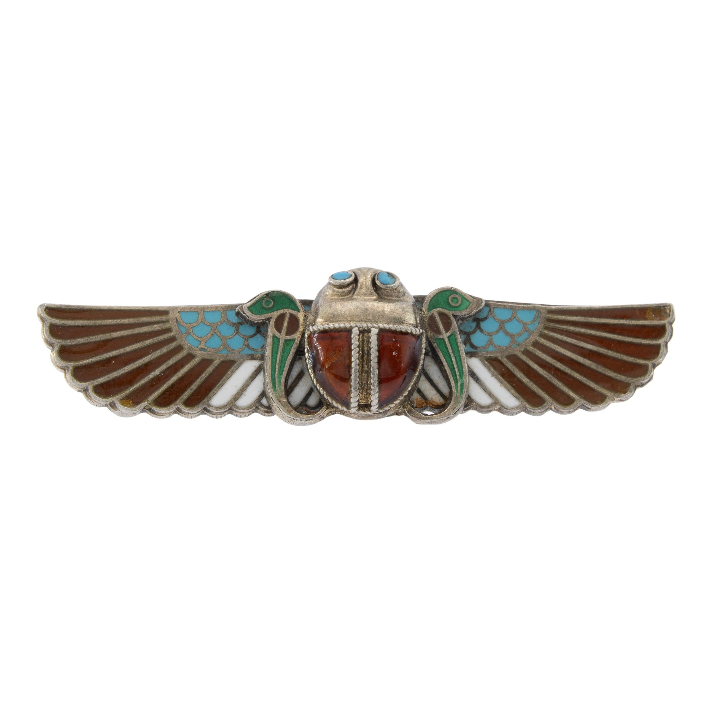 Antica spilla scarabeo in argento 950 decorata con smalto policromo