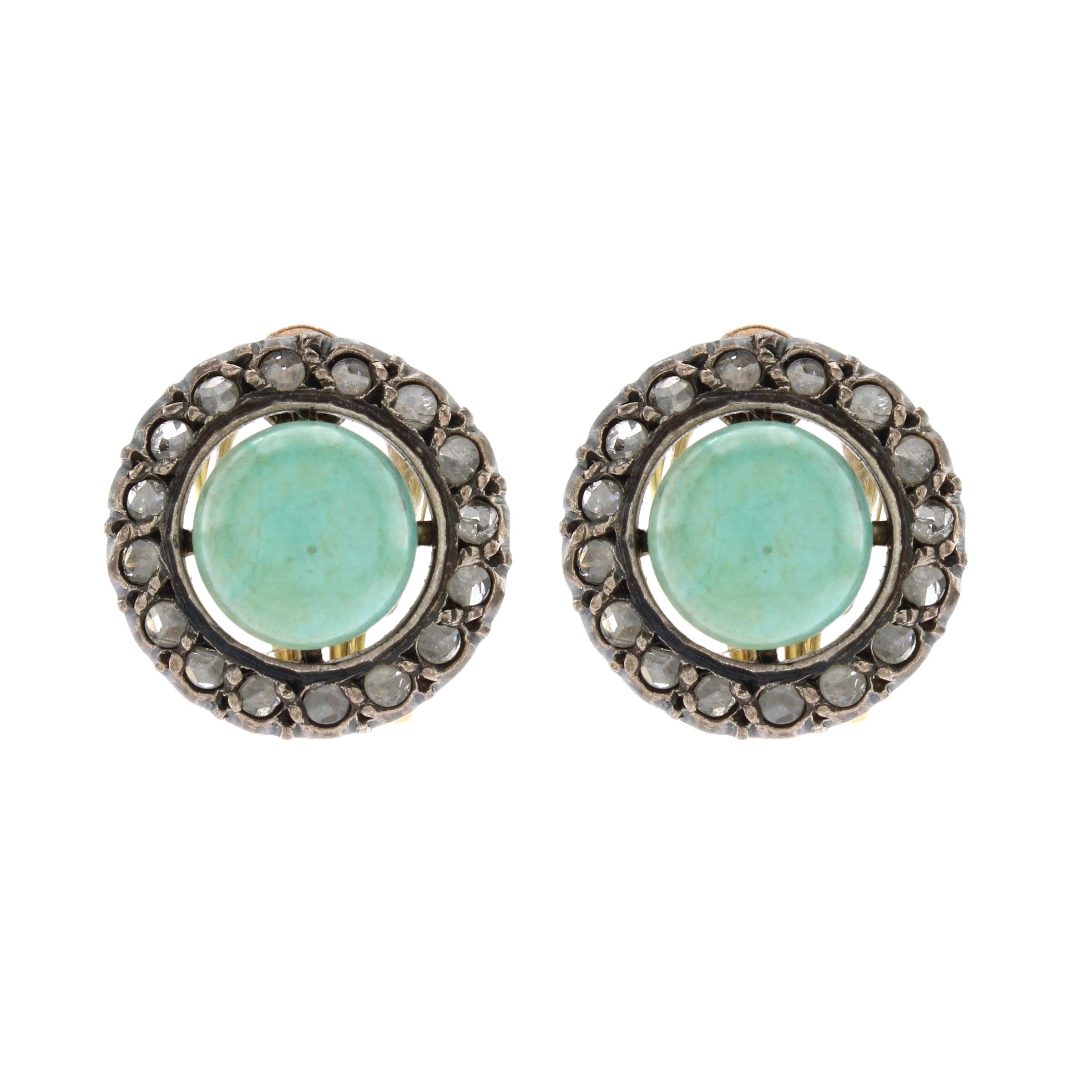primi '900 turchesi naturali e rose di diamante, diametro 1,4 cm.