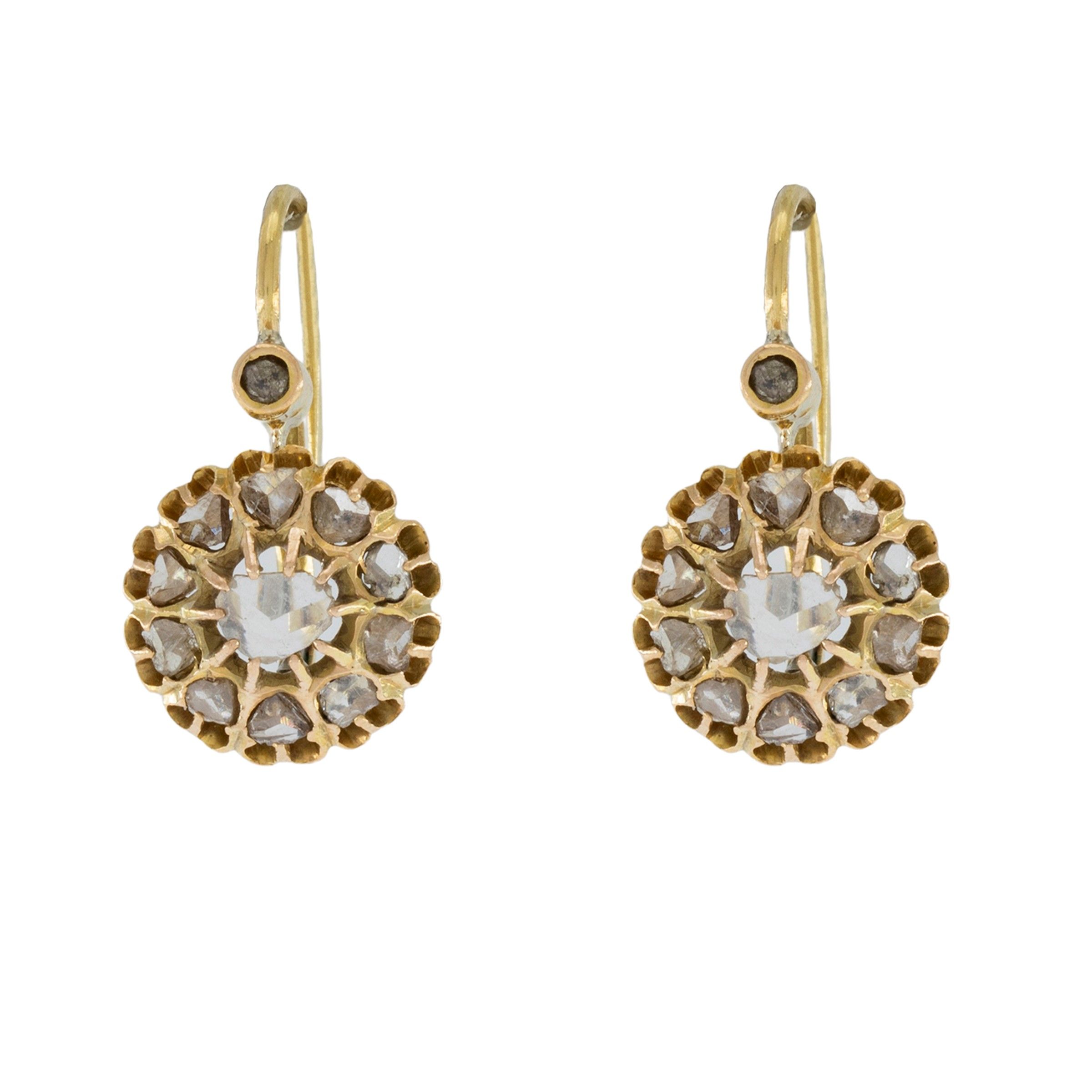 Antichi orecchini a monachina in oro giallo 12kt e rose di diamante