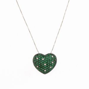 Pendente cuore in oro bianco 18kt smeraldi e diamanti