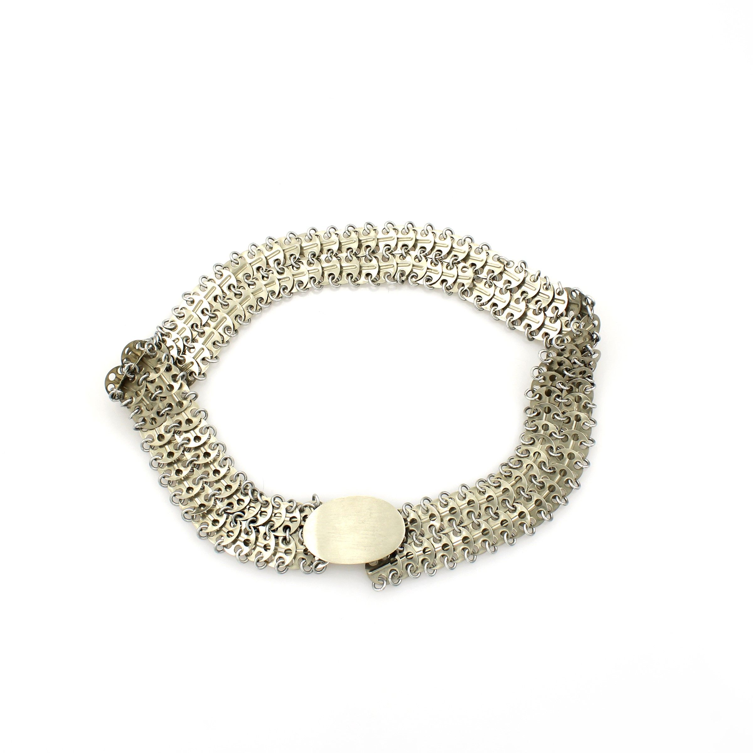 in metallo argentato, chiusura con fibbia, lunghezza 95 cm.