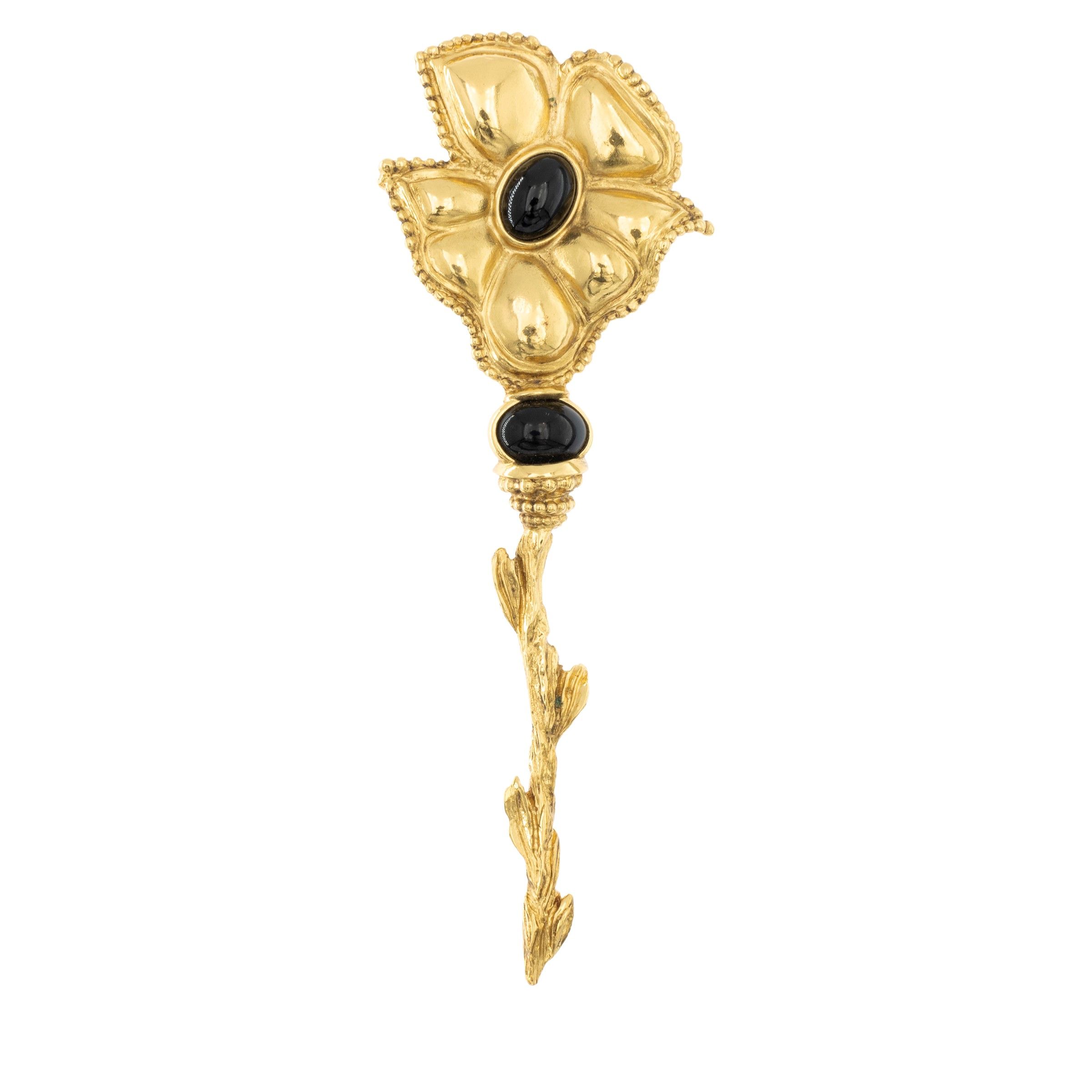 anni 90 circa in metallo dorato e onice nero, lunghezza 8,5 cm.