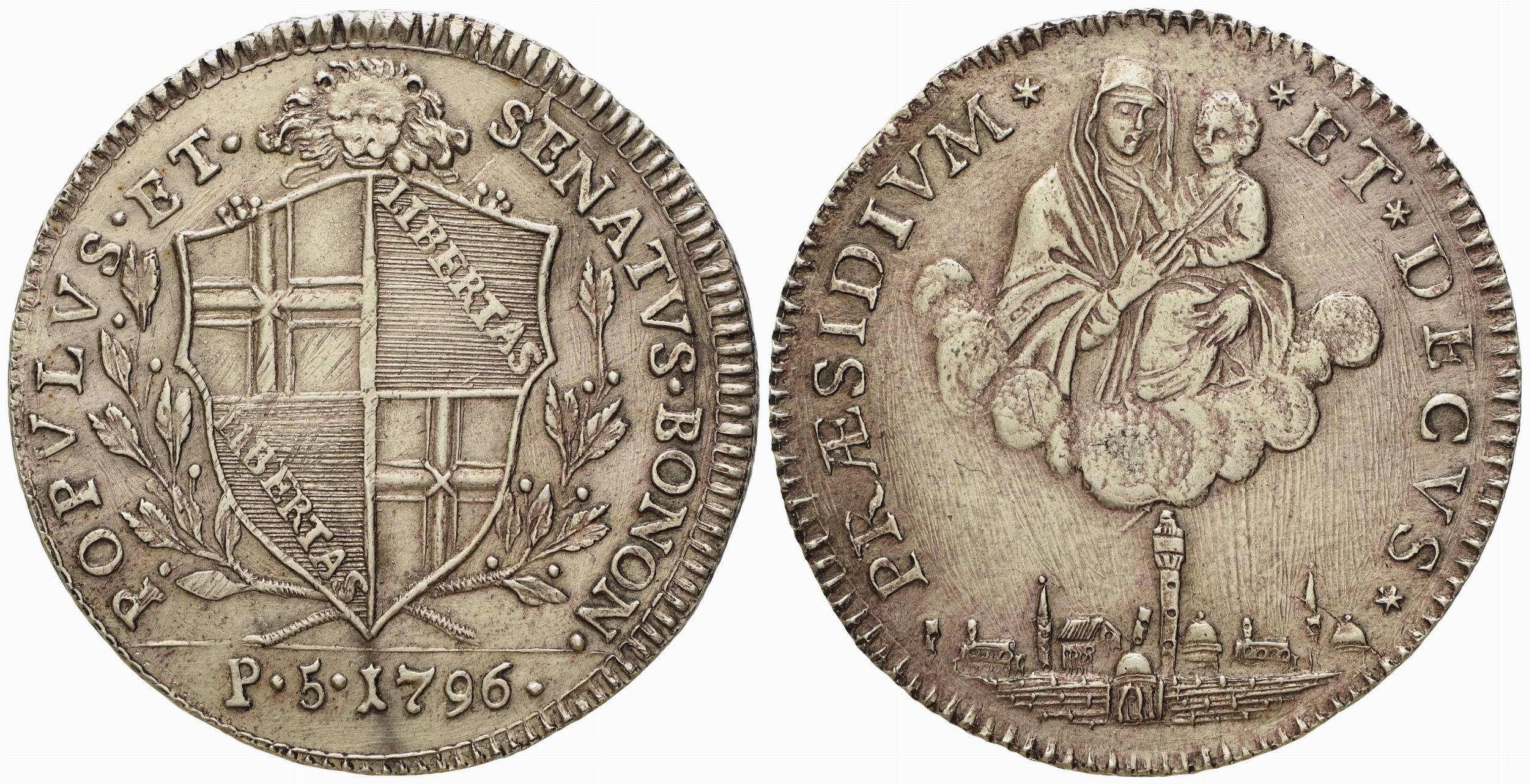 BOLOGNA. Governo popolare (1796 - 1797). Mezzo scudo 1796. Ag (14,3 g; 35,2 mm)