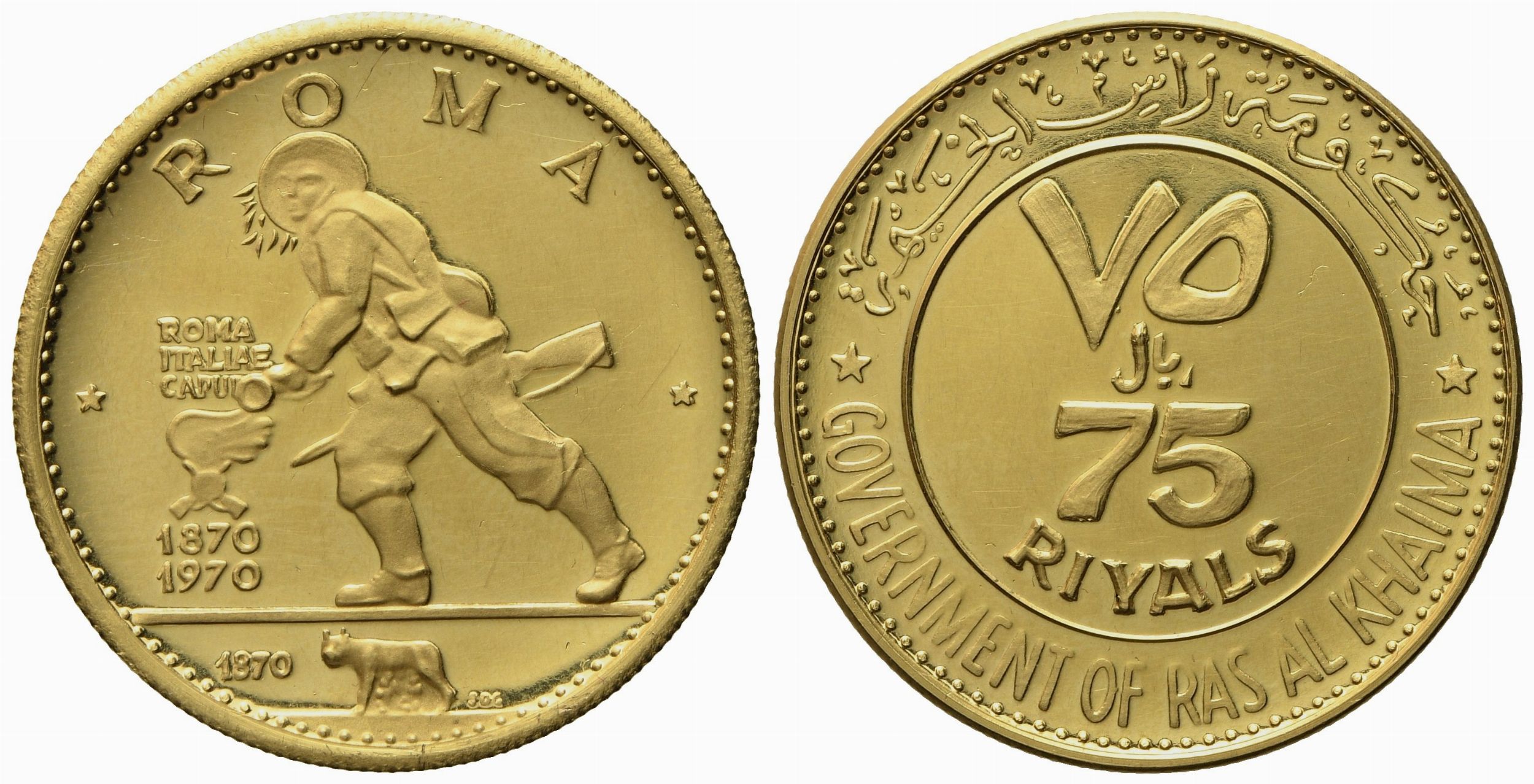 EMIRATI ARABI UNITI. Ras al Khaima. 75 riyals 1970 Centenario di Roma Capitale d'Italia. [..]