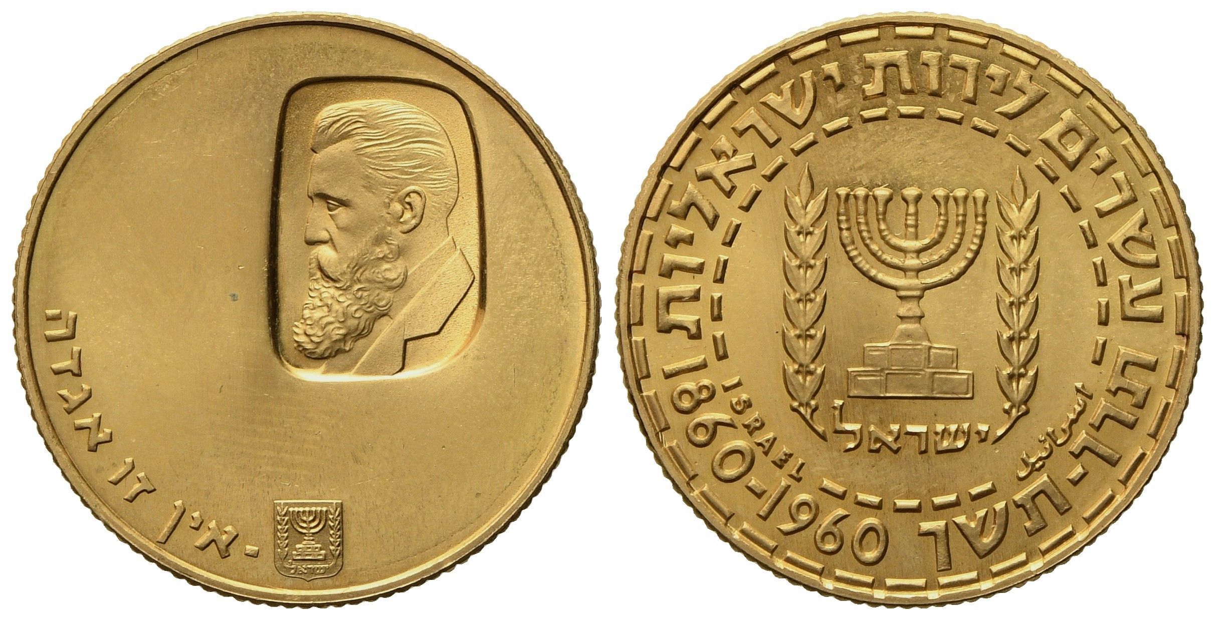 ISRAELE. 20 Lirot 1960 Theodor Herzi. Au (8 g; 22 mm)