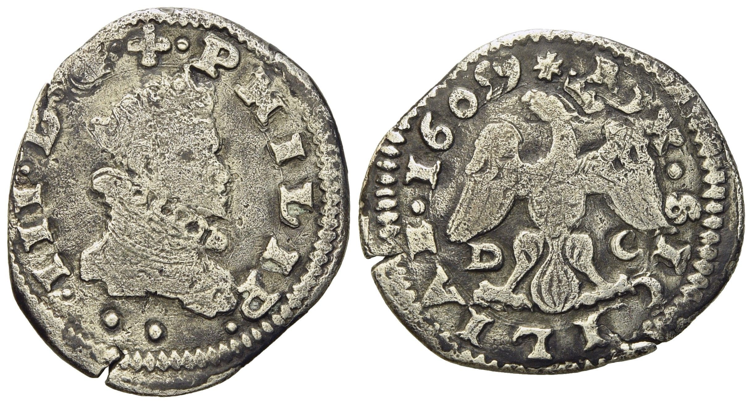MESSINA. Regno di Sicilia. Filippo III di Spagna (1598-1621). 2 tarì 1609. Ag (4,3 [..]