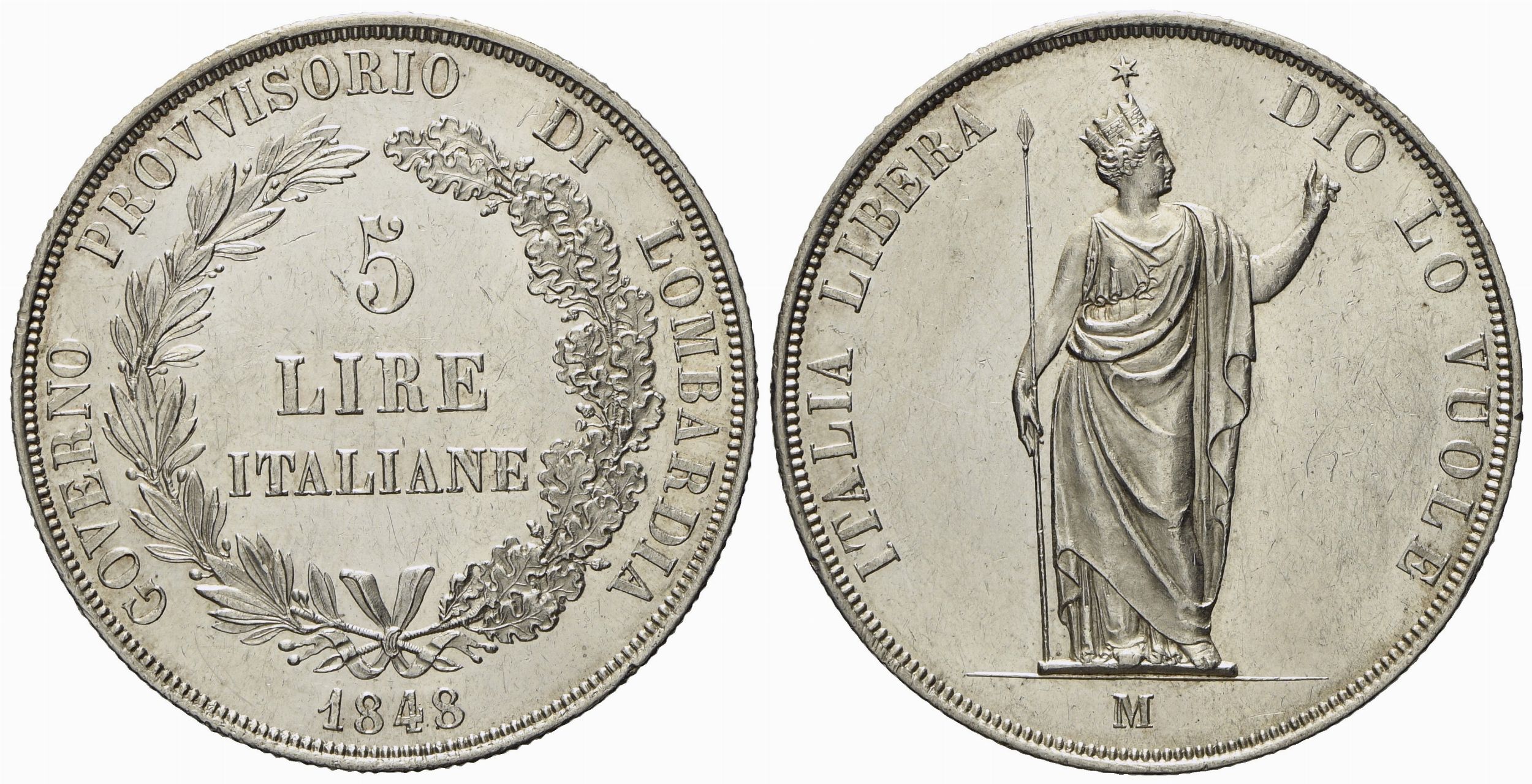 MILANO. Governo Provvisorio di Lombardia. 5 lire 1848 Stella vicina, base spessa. [..]