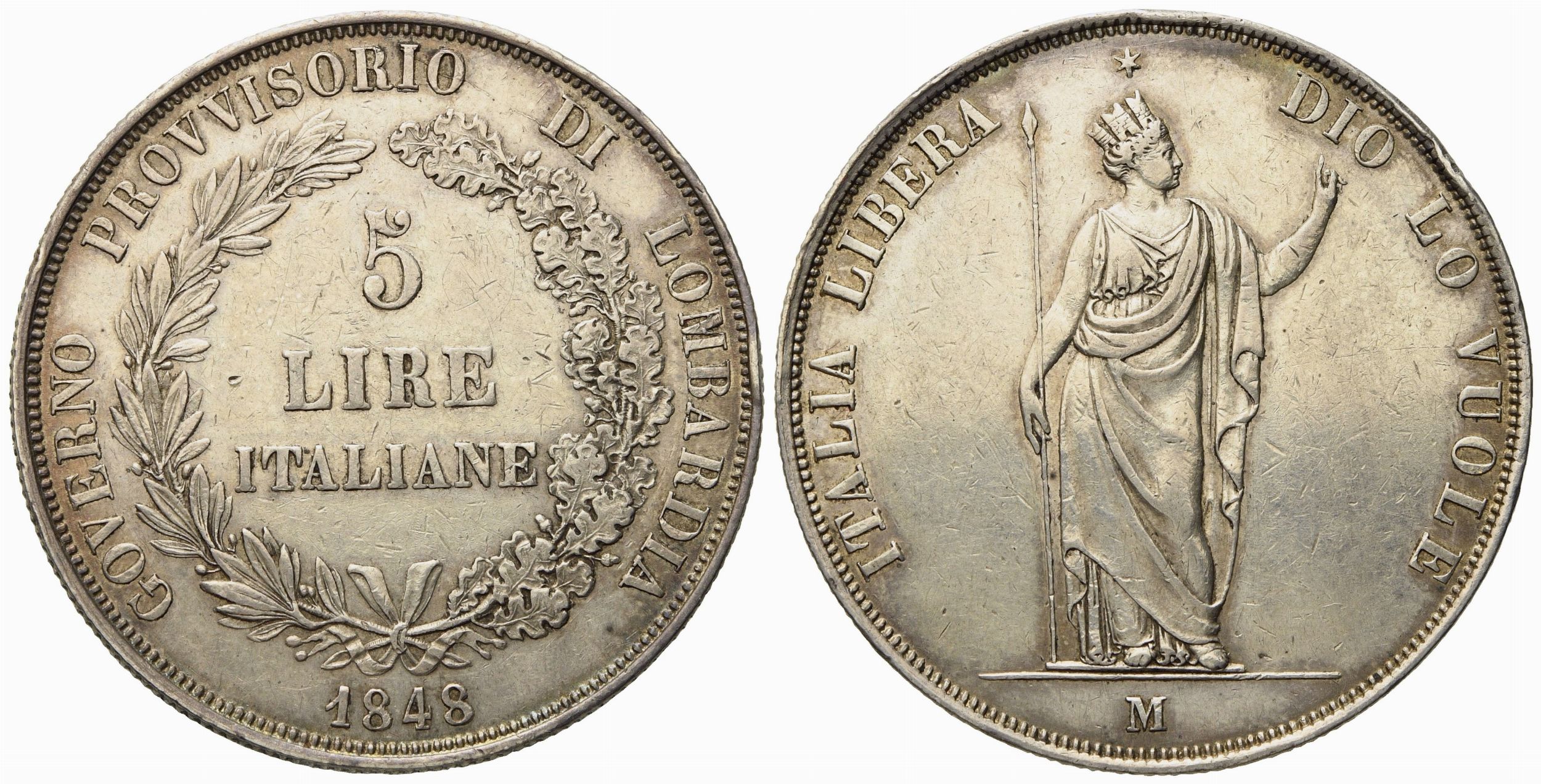 MILANO. Governo Provvisorio di Lombardia. 5 lire 1848 Stella lontana, rami corti. [..]