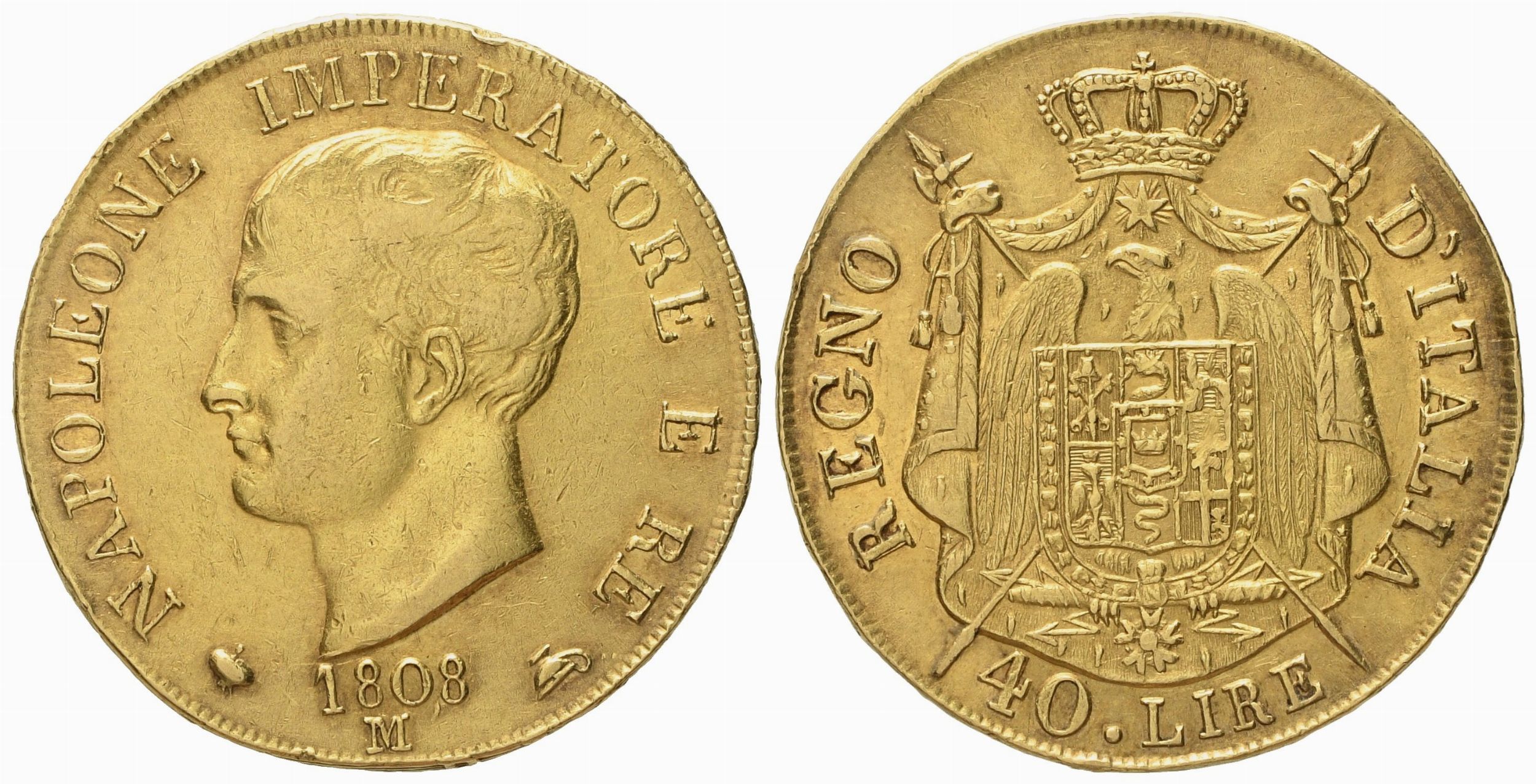MILANO. Regno d'Italia. Napoleone I (1805-1814). 40 lire 1808 - I tipo. Au (12,84 [..]