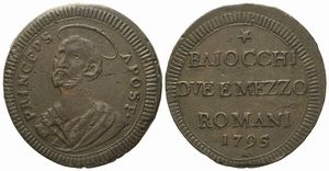 STATO PONTIFICIO. Roma. Pio VI (1775 - 1799). Due baiocchi e mezzo 1795 princeps [..]