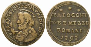 STATO PONTIFICIO. Roma. Pio VI (1775 - 1799). Due baiocchi e mezzo 1797. Cu (g 12,89; [..]