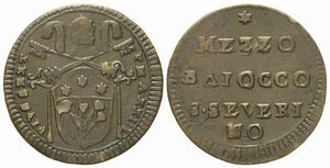 STATO PONTIFICIO. San Severino. Pio VI (1775 - 1799). Mezzo baiocco 1797, anno XXIII. [..]