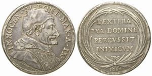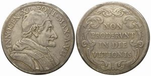 STATO PONTIFICIO. Roma. Innocenzo XI (1676 - 1689). Piastra 1684. Ag (31,78 g; 44 [..]