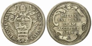 STATO PONTIFICIO. Roma. Innocenzo XI (1676 - 1689). Testone 1684. Ag (9,10 g; 31,7 [..]