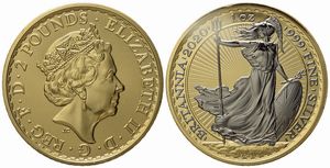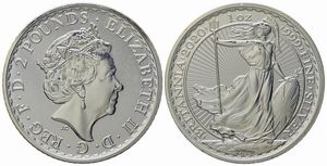 INGHILTERRA. Elisabetta II (1952 - 2022). 2 Pounds 2020 Britannia, Ag (31,1 g; 39 [..]