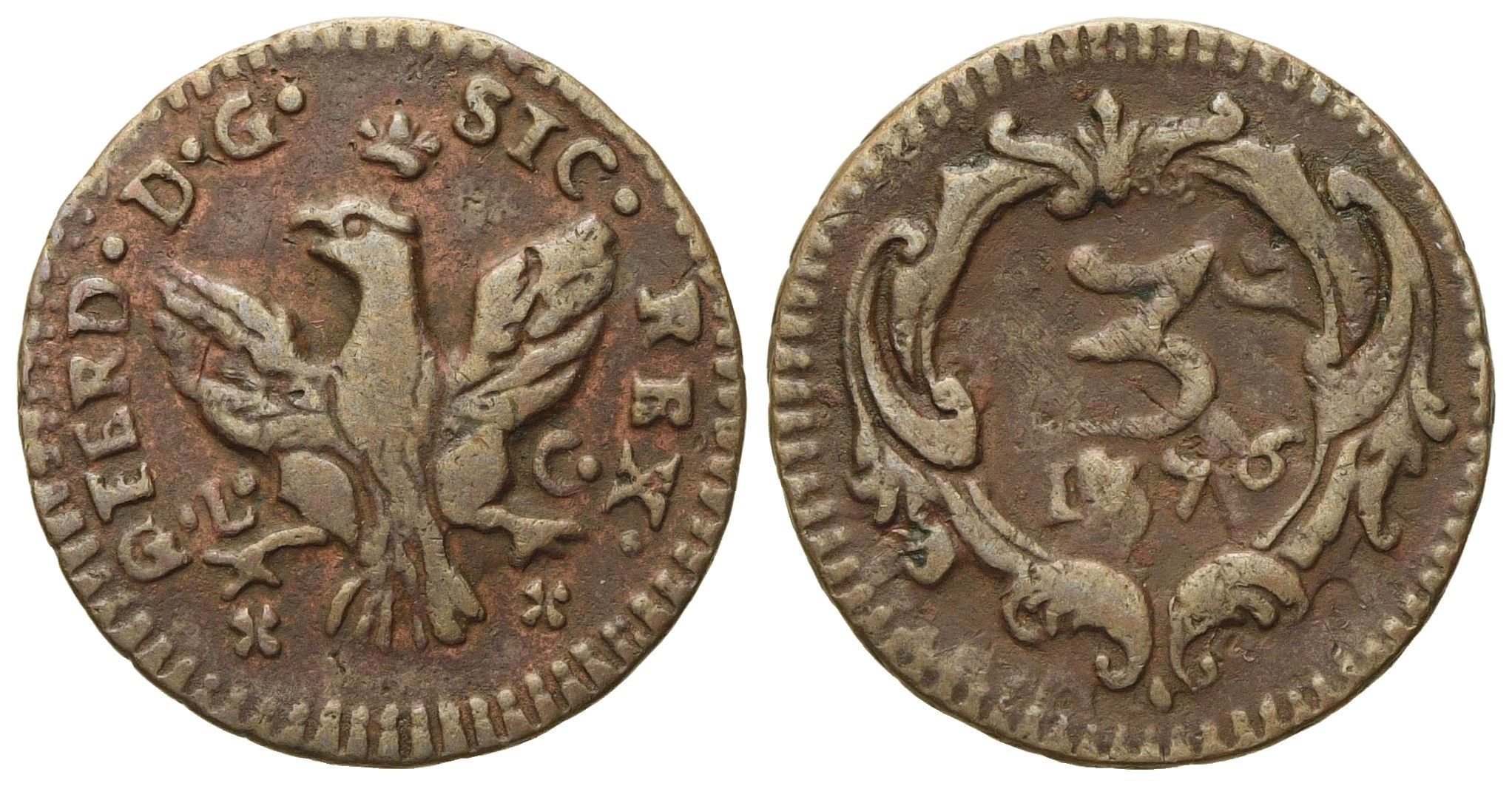 PALERMO. Regno di Sicilia. Ferdinando III di Borbone (1759 - 1816). Mezzo grano [..]