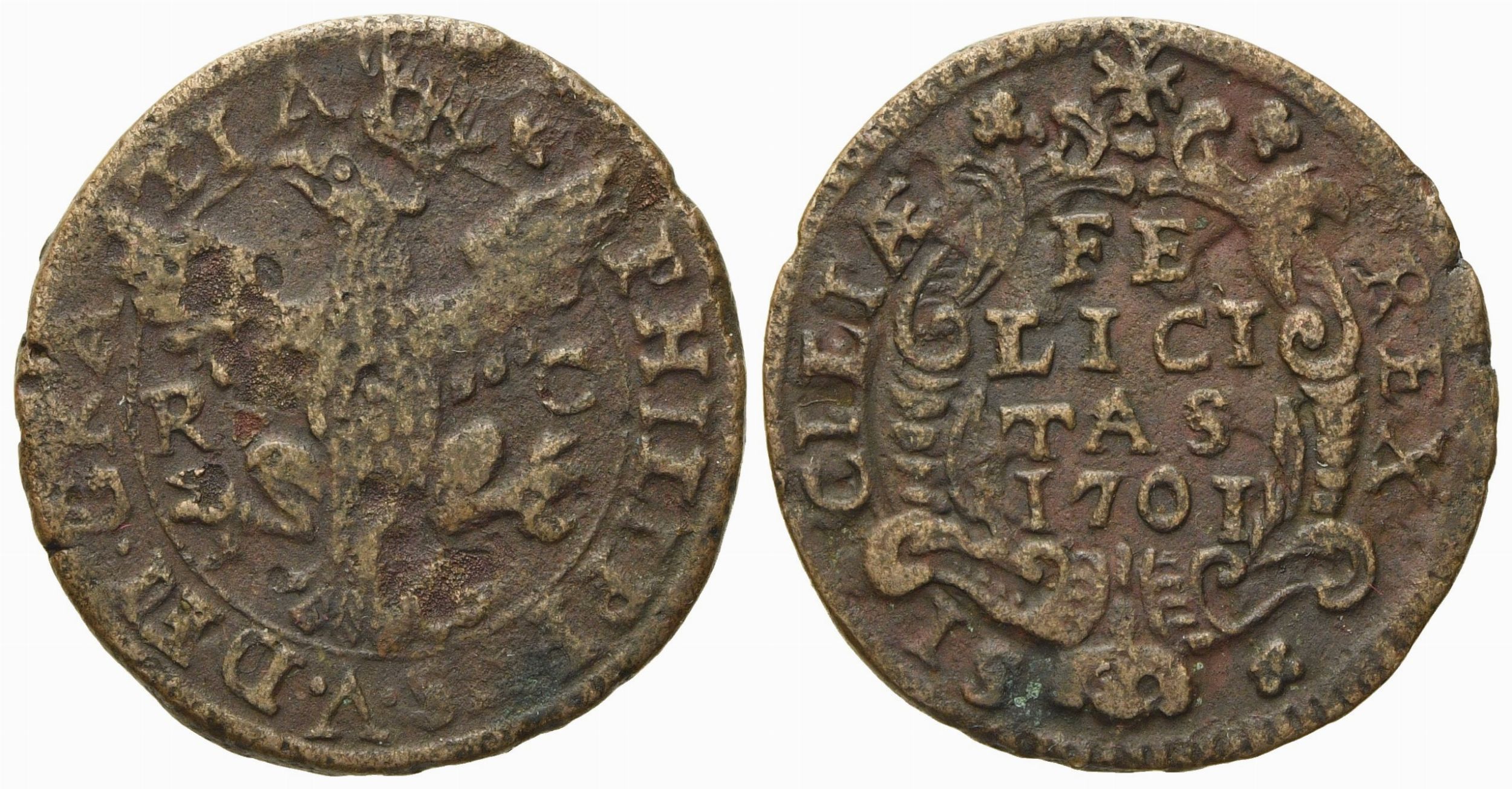 Palermo. Regno di Sicilia. Filippo V di Borbone (1701-1713). Grano 1701. Cu (5 g; [..]