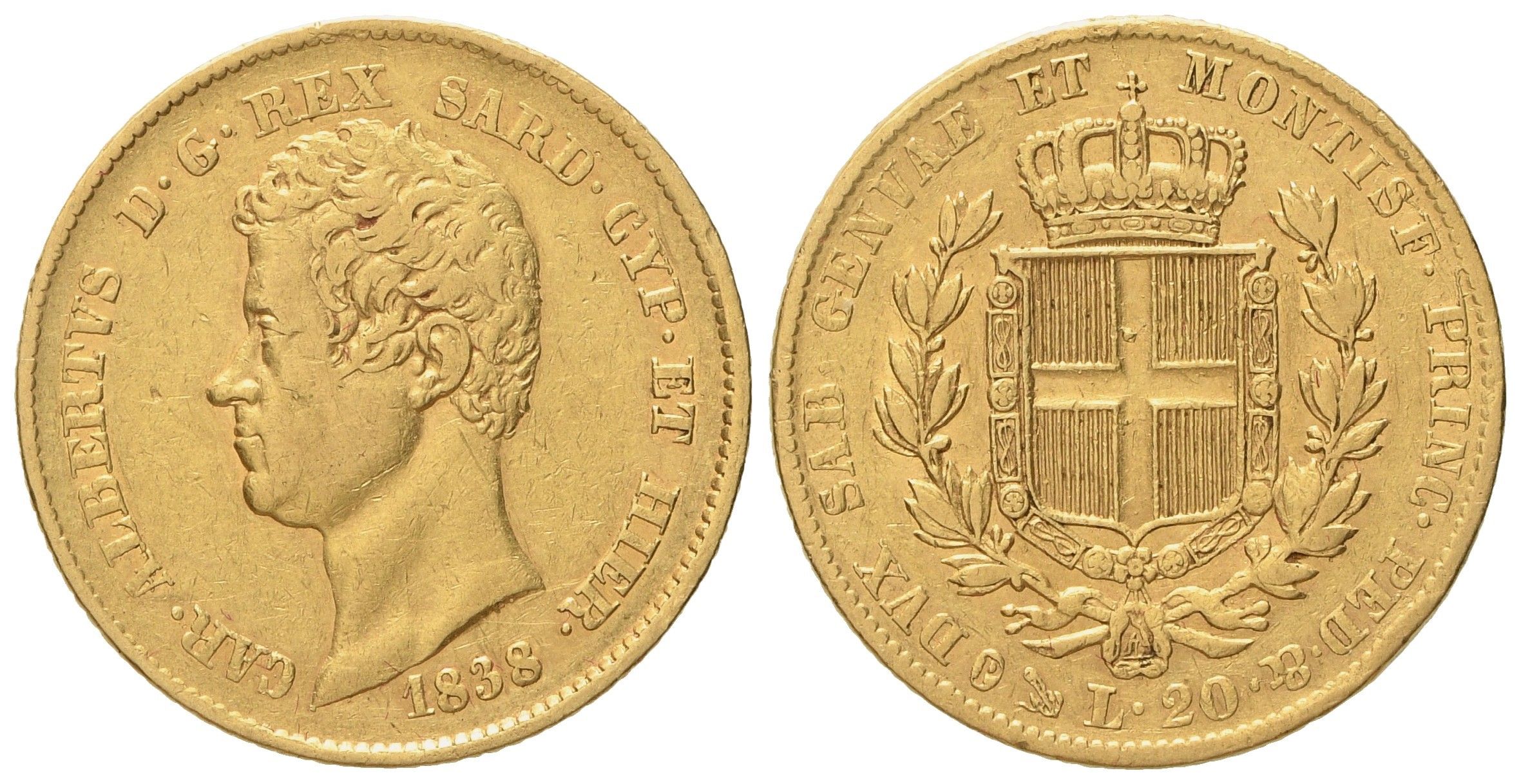 REGNO DI SARDEGNA. Genova. Carlo Alberto (1831-1849). 20 Lire 1838. Au (6,40 g; [..]