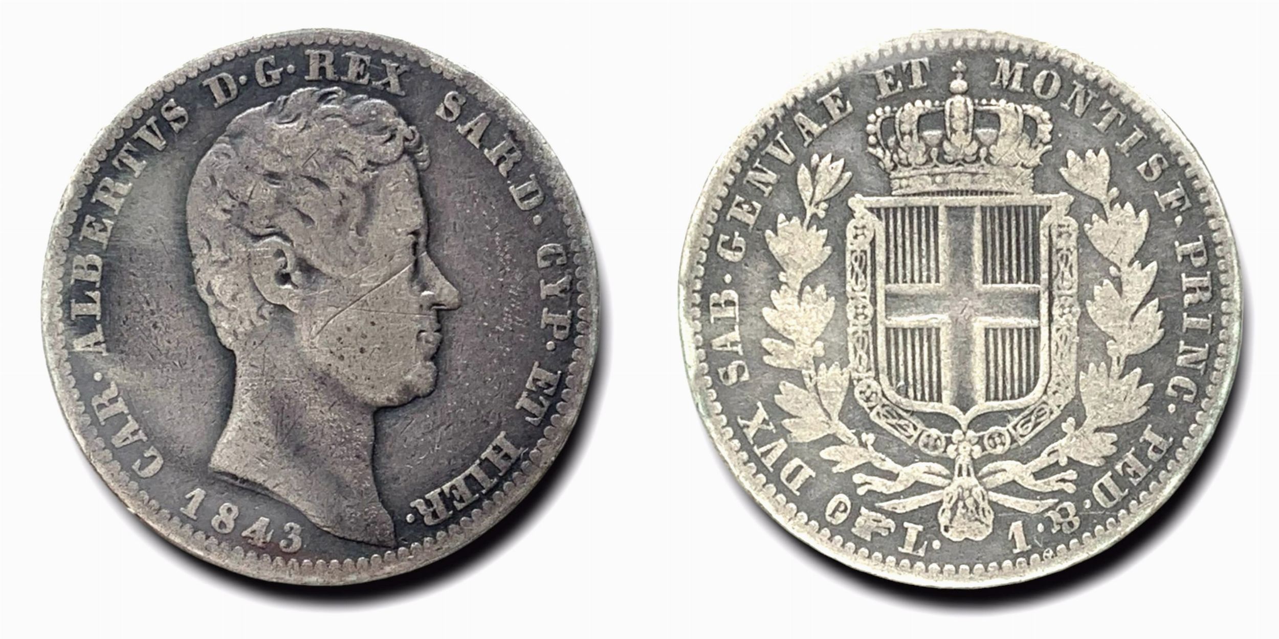 REGNO DI SARDEGNA. Torino. Carlo Alberto (1831-1849). 1 lira 1843. Ag