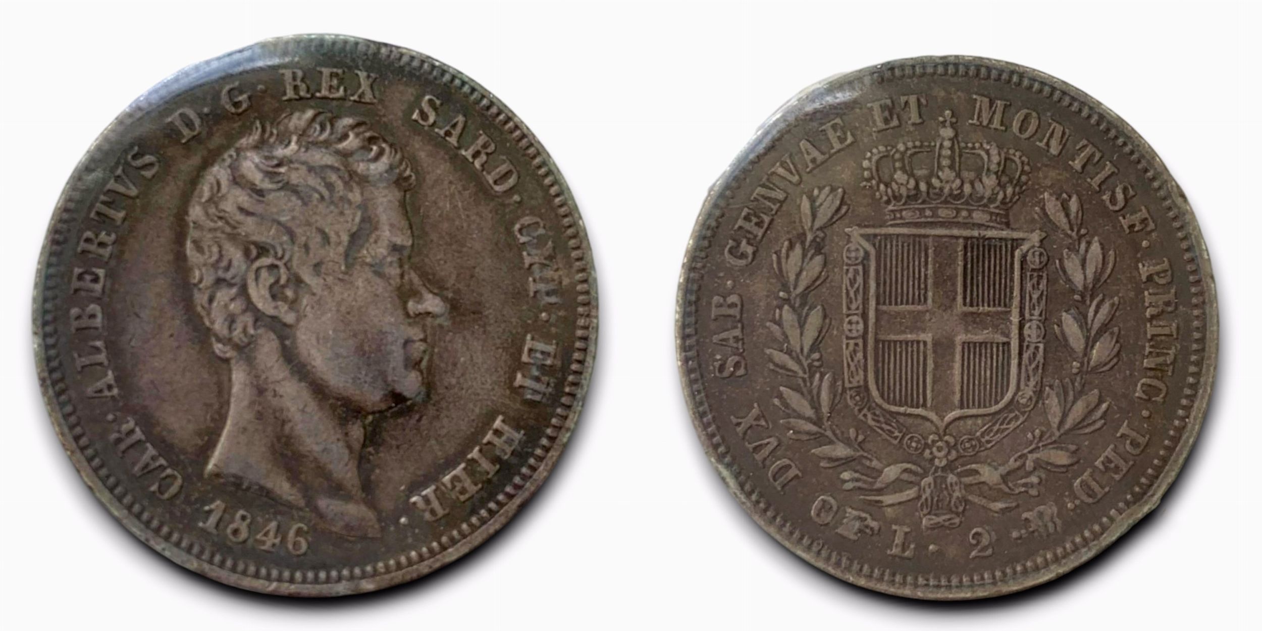 REGNO DI SARDEGNA. Torino. Carlo Alberto (1831-1849). 2 lire 1846. Ag
