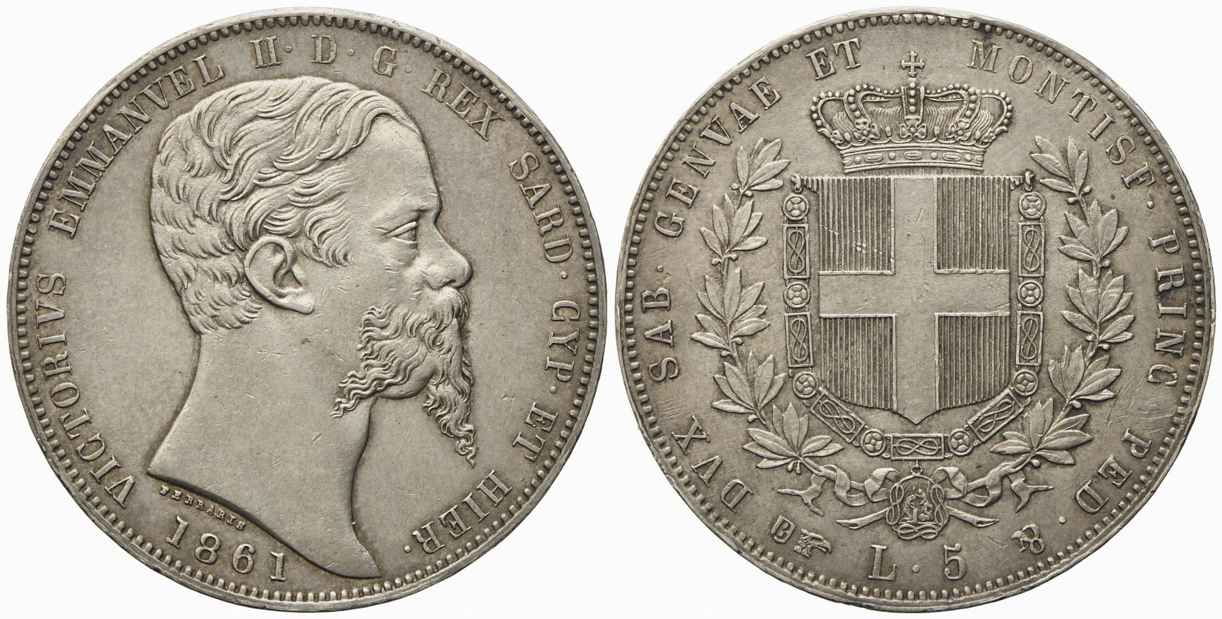 REGNO DI SARDEGNA. Torino. Vittorio Emanuele II (1849-1861). 5 Lire 1861. Ag (25 [..]