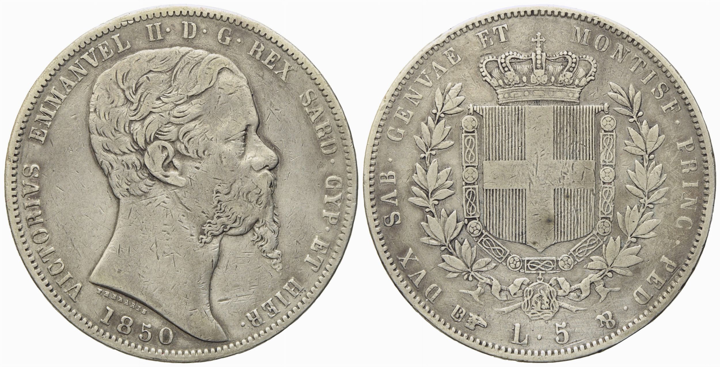 REGNO DI SARDEGNA. Torino. Vittorio Emanuele II (1849-1861). 5 Lire 1850. Ag (24,94 [..]