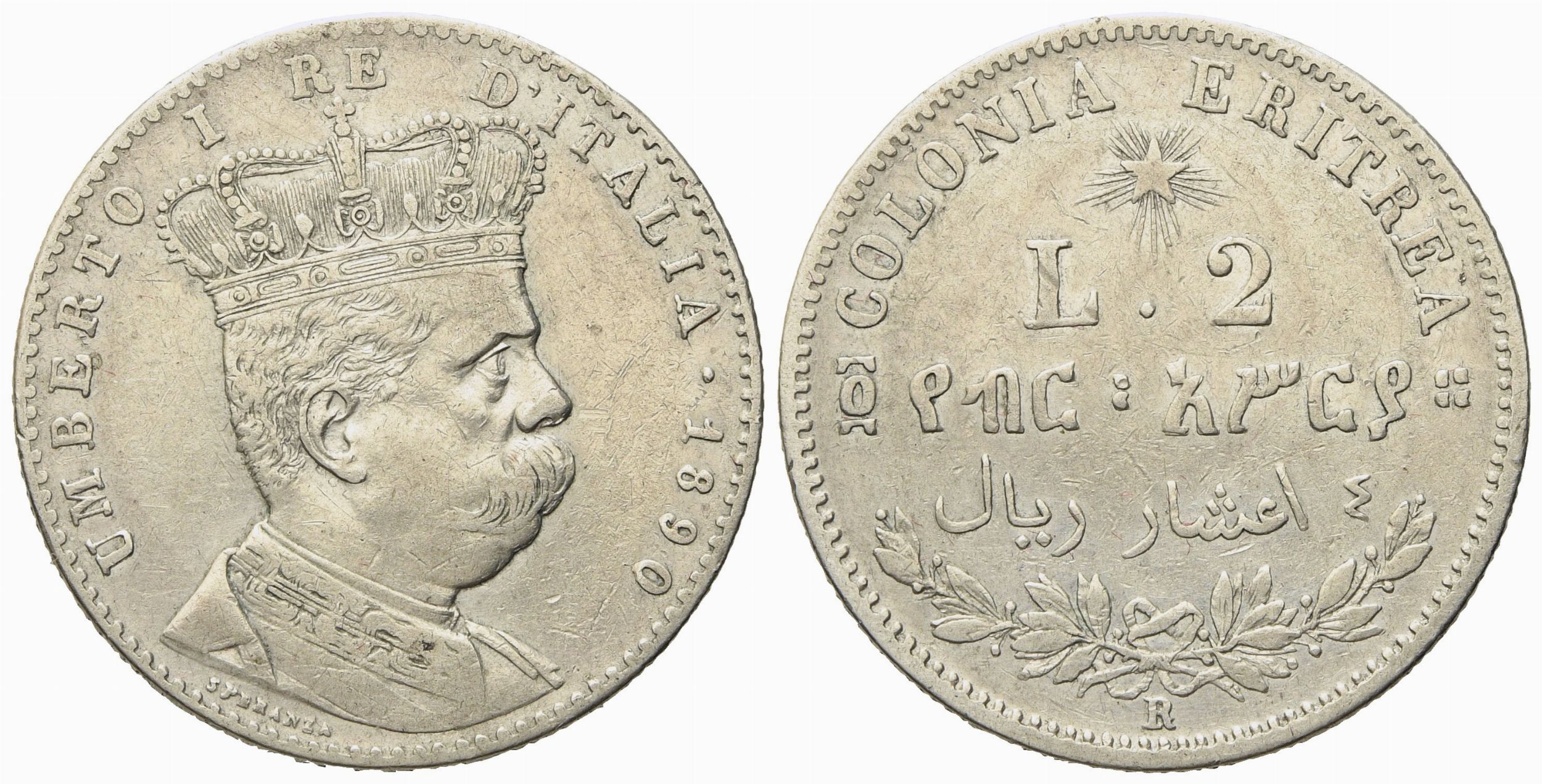 REGNO D'ITALIA. Colonia Eritrea. Umberto I (1890-1896). 2 Lire - 4/10 di Tallero [..]