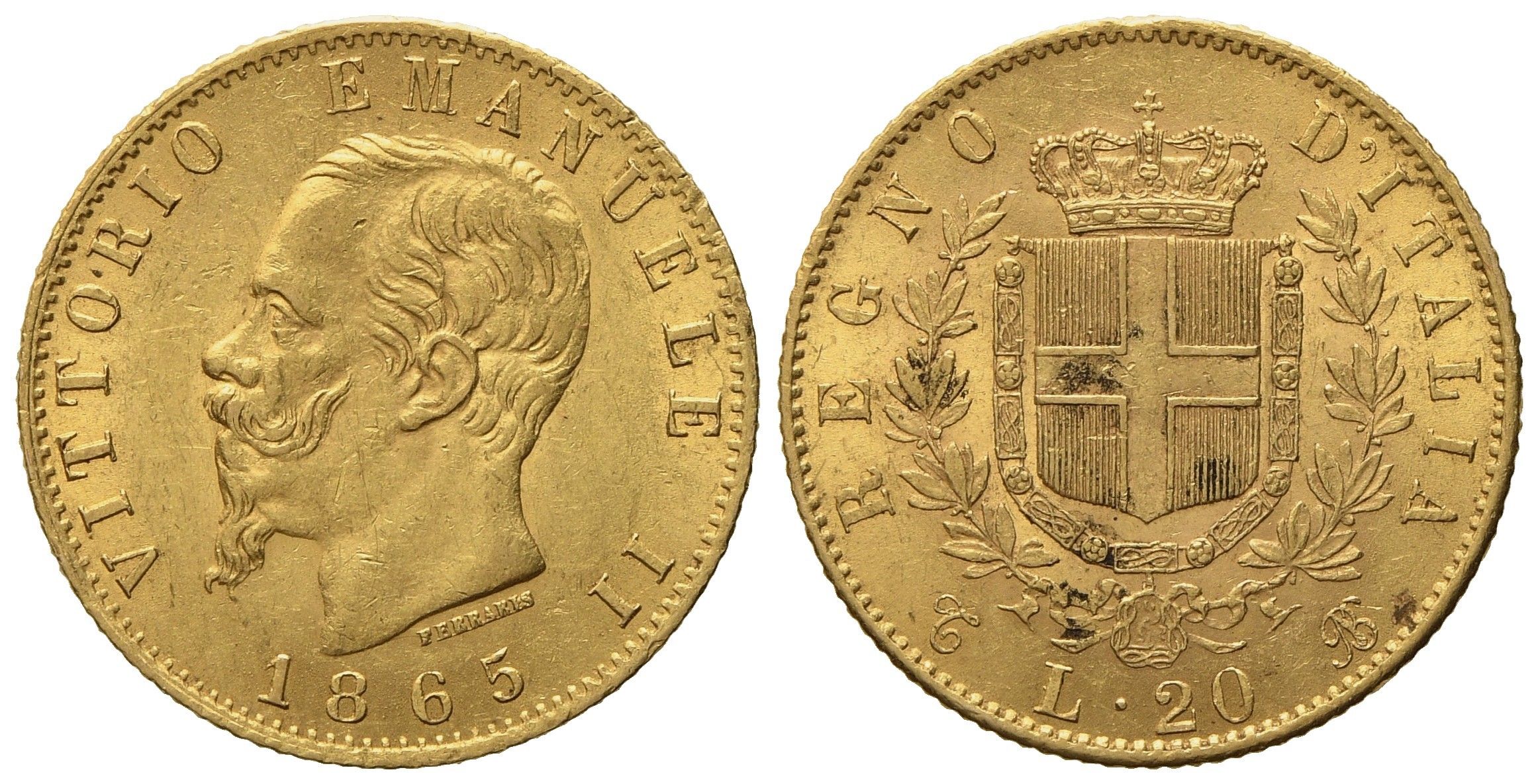 REGNO D'ITALIA. Torino. Vittorio Emanuele II (1861 - 1878). 20 lire 1865. Au (20,8 [..]