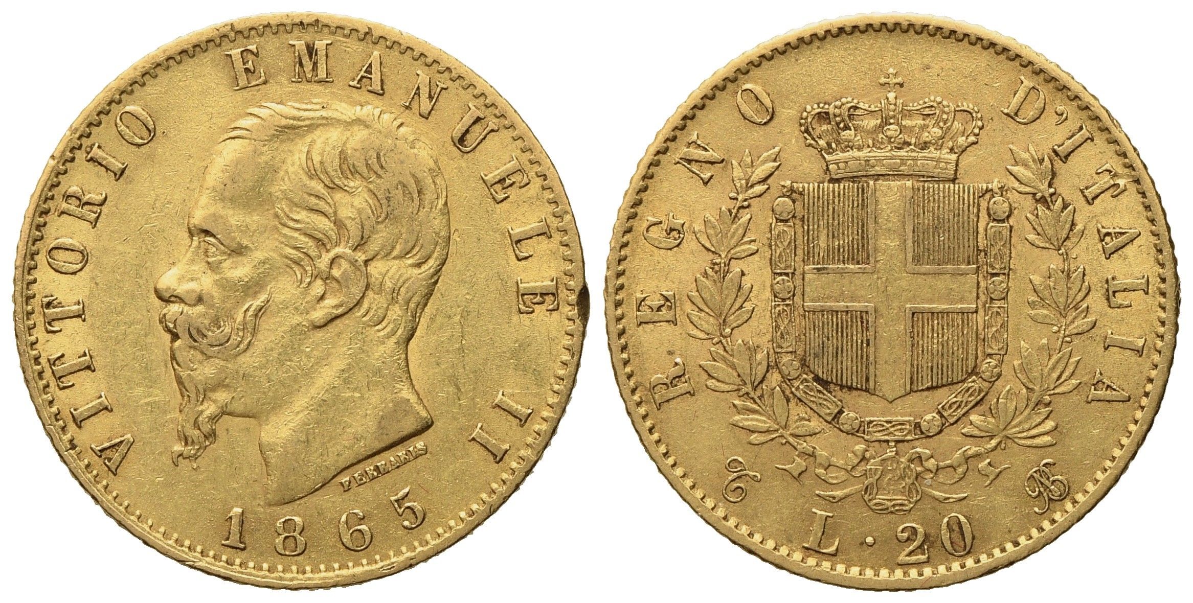 REGNO D'ITALIA. Torino. Vittorio Emanuele II (1861 - 1878). 20 lire 1865. Au (6,45 [..]