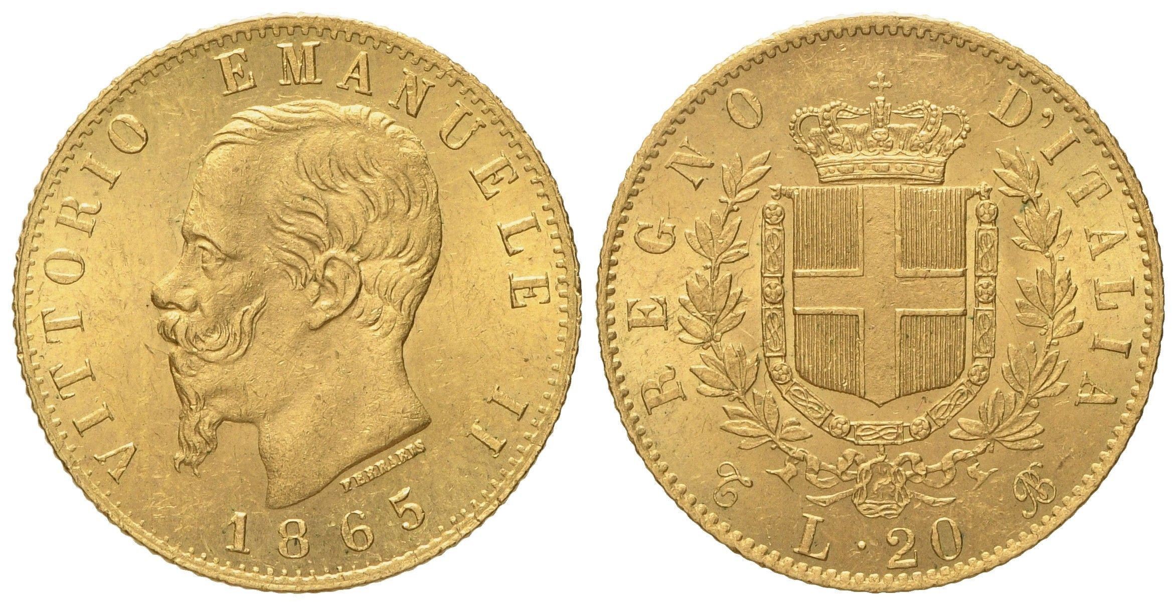 REGNO D'ITALIA. Torino. Vittorio Emanuele II (1861-1878). 20 lire 1865. Au (6,44 [..]