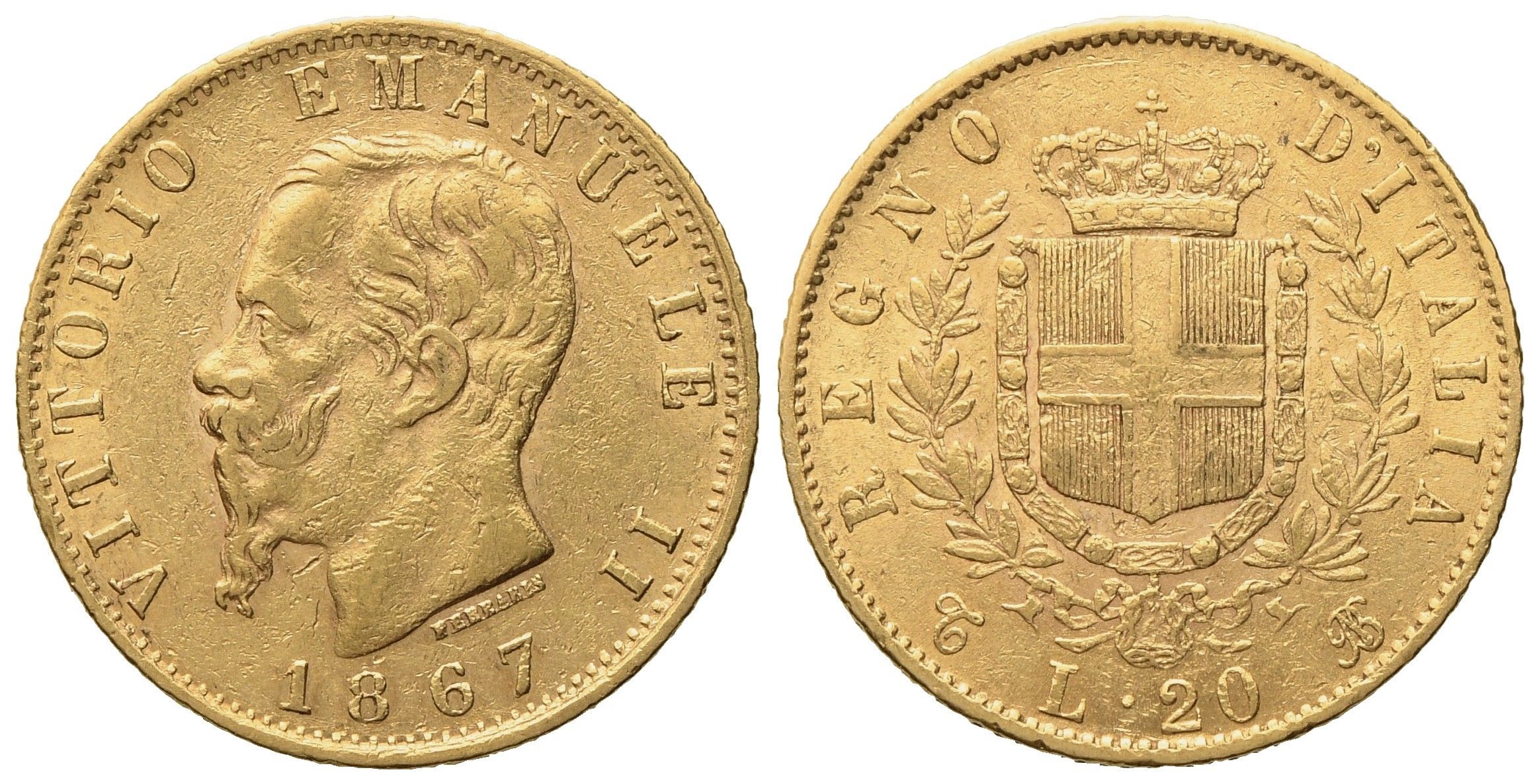 REGNO D'ITALIA. Torino. Vittorio Emanuele II (1861-1878). 20 lire 1867. Au (20,8 [..]