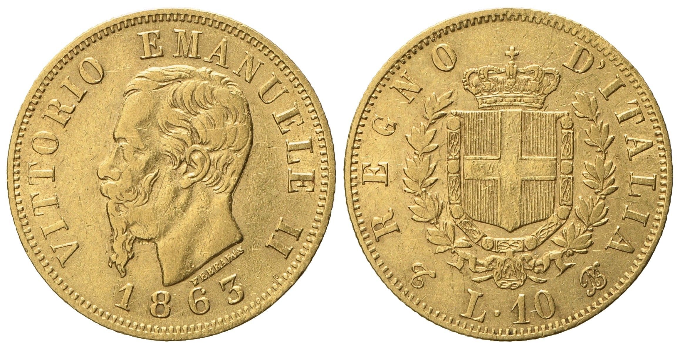 REGNO D'ITALIA. Torino. Vittorio Emanuele II (1861 - 1878). 10 lire 1863. Au (3,21 [..]